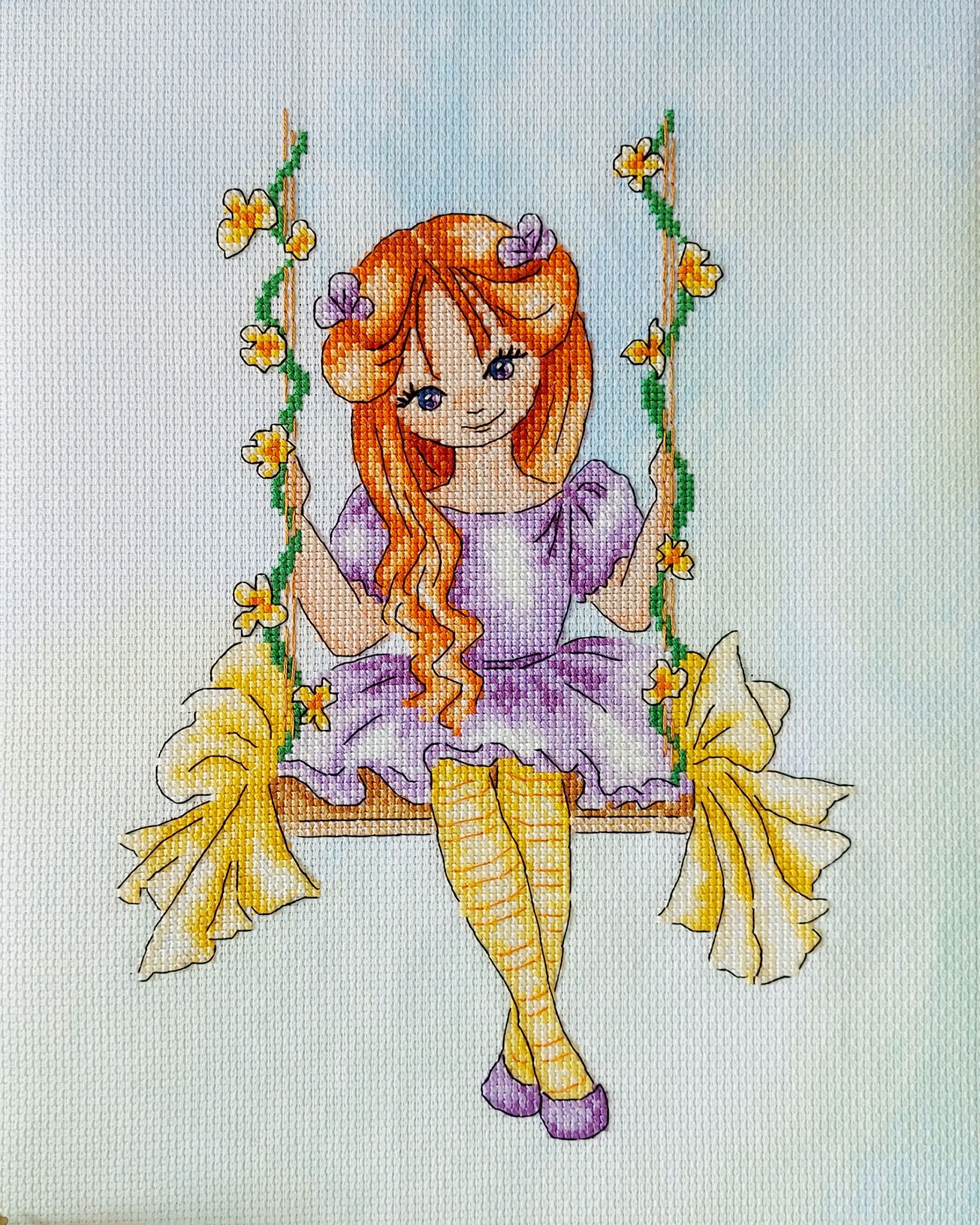 23 апреля 2021 Это, наверное, одна из самых простых работ, которые я вышивала за последнее время (зверюшки из авантюры не в счет). Я даже удивилась насколько простыми я стала рисовать схемы - вот, что значит самой их вышивать - идеальный баланс реалистичности и легкости в отшиве. Только на глазках используются четвертинки крестиков, но в ключе имеется макро схема этого фрагмента, так что ошибиться невозможно. Я уже писала про аиду роскошной покраски, которую я использовала для этой работы (камера однозначно не может передать всю ее прелесть). Я специально оставила очень большие припуски, чтобы во время оформления сохранить как можно больше красоты ткани. Что, кстати, весьма подходит этому сюжету, это же качели, много воздуха тут необходимо. Кисуля, Naduh, Surik и 2 других сказали спасибо Поделиться сообщением Ссылка на сообщение