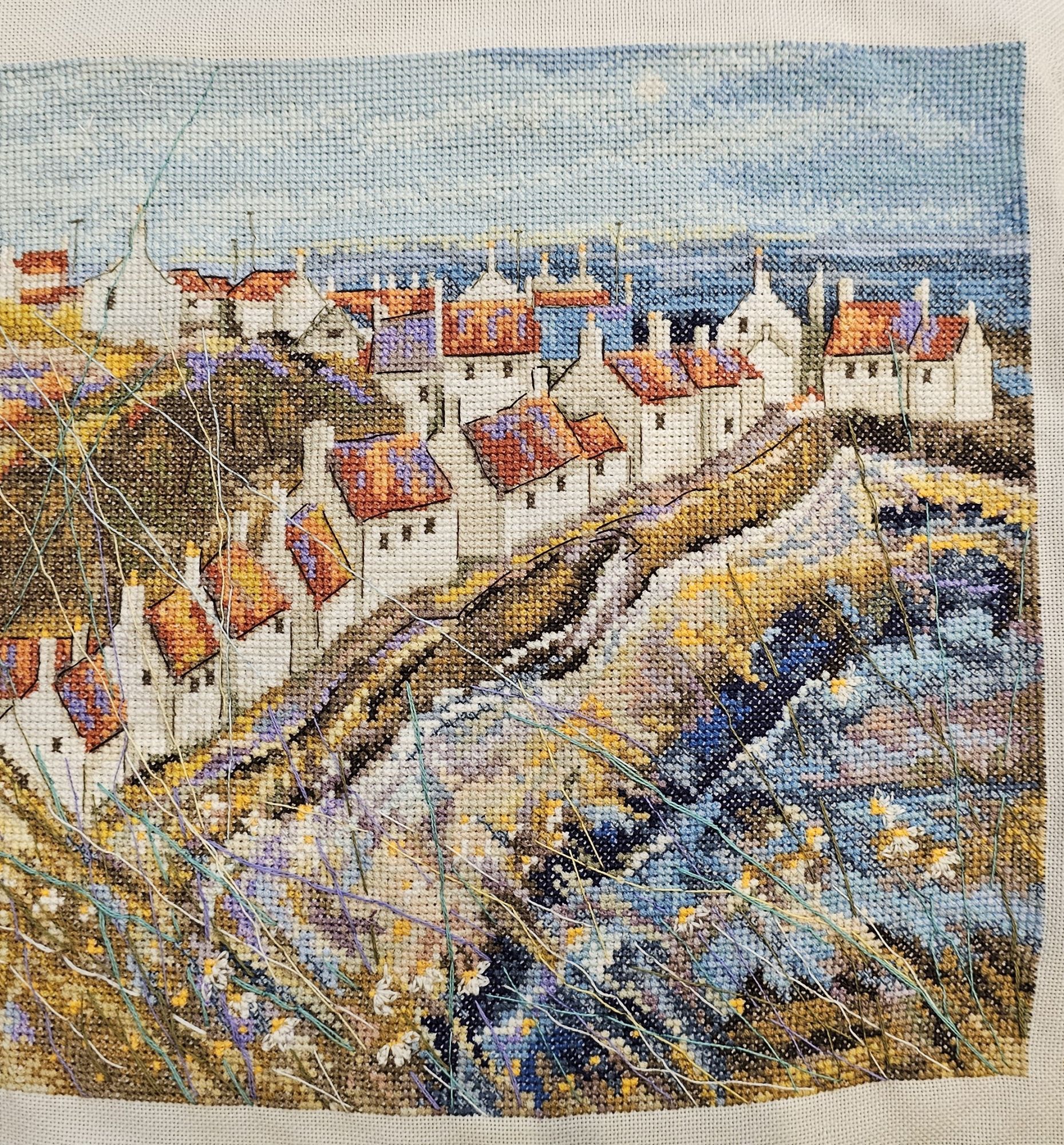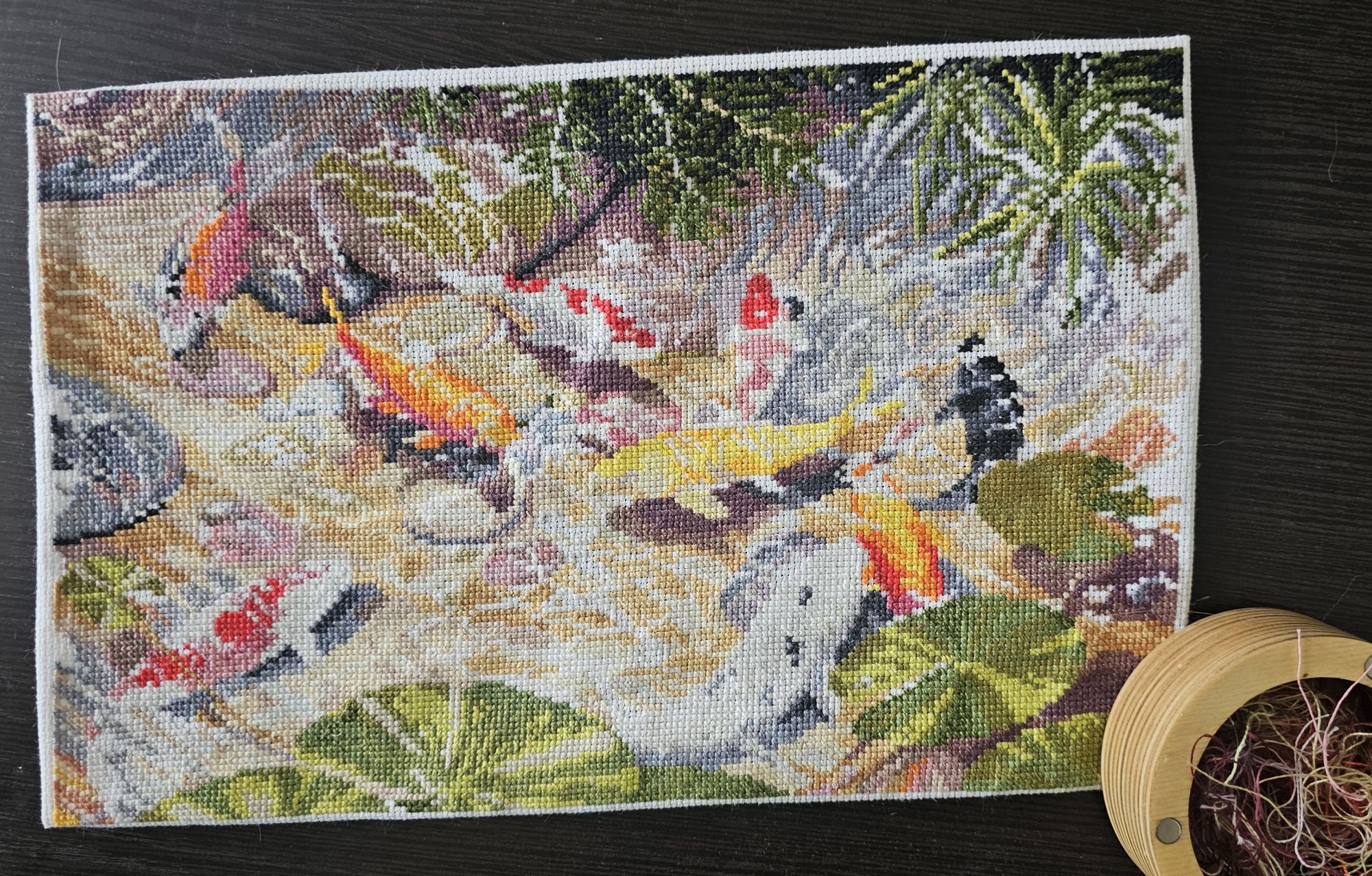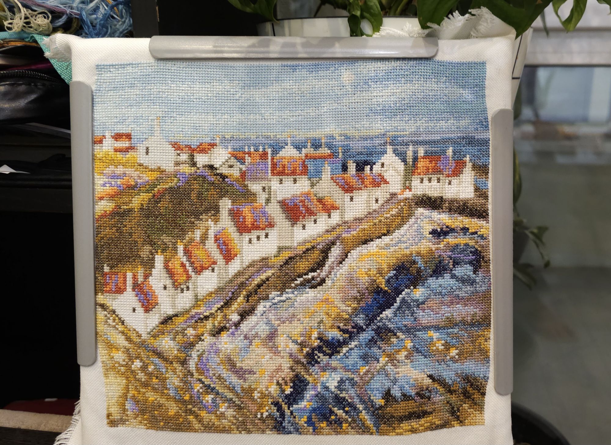 3 декабря 2024 Завершилась эпопея с Солнечным берегом. Снова я за него взялась во время отпуска: за время перелёта дошила кучу пропущенных одиночек, и понемногу вышивала в теплом египетском октябре Потом продолжила дома. И вот вчера поставила точку в этом процессе. Какие ощущения и выводы? Очень много одиночек, вышивала по электронной схеме, с бумаги, наверное, еще долго колупалась бы. В этом процессе моя самая неудачная замена - заменила Аиду на Монику. Моника жидкая и безумно тянется, что затрудняло работу, а особенно сказалось на качестве бэка. Надеюсь, что смогу поправить при натяжке. И к слову о бэке. Он безумный: из середины клеточки в середину, длинным стежками от каря до края вышивки. Скажу честно, весь его я не вышила. Надоело и я остановилась, когда поняла, что мне бэка достаточно. И одного цвета, который шел только на бэк мне не хватило. Leutnant Ripley, Aleksacha , Marusya1978 и 4 других сказали спасибо Поделиться сообщением Ссылка на сообщение