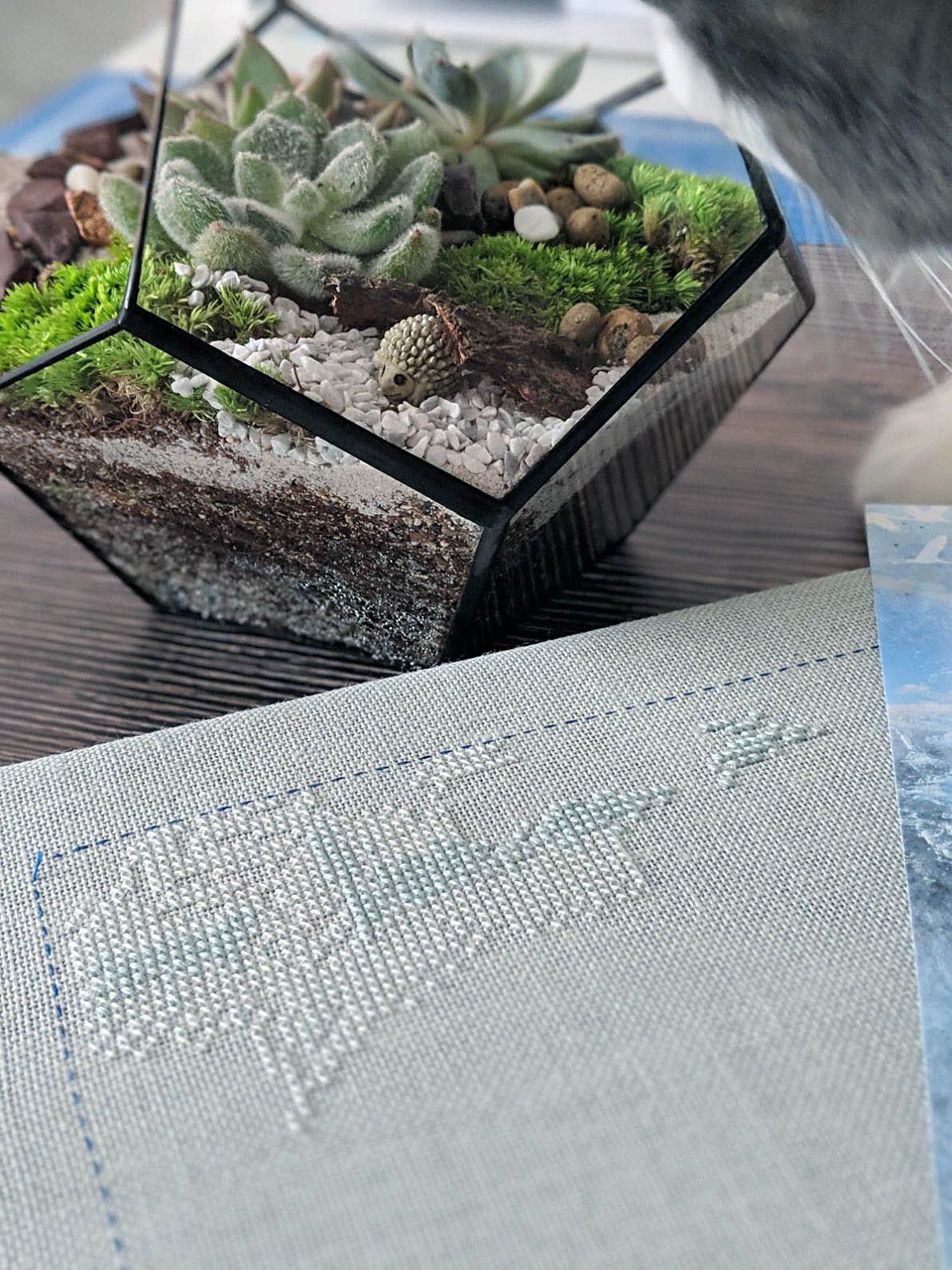 22 февраля 2019 Новый старт, отчет с первыми крестиками. Думаюработа будет идти долго и медленно, но я справлюсь. Набор РТО М694 "Штормовое море" Старт: 22.02.2019 Размер: 140 х 140 крестиков, 25х25 см 35 цветов, 8 блендов Основа: Cashel 28ct цвет 718 (заменила Аиду 14 из набора) Наконец получила один из трёх наборов с весенней Формулы рукоделия и сразу начала его шить. Это мой первый набор от РТО, расскажу о впечатлениях. Оказалось что размер вышивки раза в полтора больше, чем мне казался изначально)) И удивило что в дизайне совсем нет полукреста - придется весь фон вышивать крестиком. Большой соблазн был переделать на свой лад и шить полукрестом, но я сдержалась)) Канву из набора заменила на лён, мне кажется цвет подошёл идеально. Пока небо шить сложно: огромные участки крестом в 1-2 нити, цвет такой же, как у канвы, все сливается. Схема идеального для меня формата/размера, чёрно-белая для крестиков (увы), зато цветная для бэка. Бумага тонкая, легко мнется, но я все равно буду делать копию на хорошей плотной, чтобы по ней чёркать. После Панны, Алисы, Хью Крафтс и Дима хочется конечно цветной схемы, но это уже мечты-мечты. Думаю что результат будет потрясающий, а это главное. tavenir, FEDORMaзиус, S4astlivaja и 8 других сказали спасибо Поделиться сообщением Ссылка на сообщение