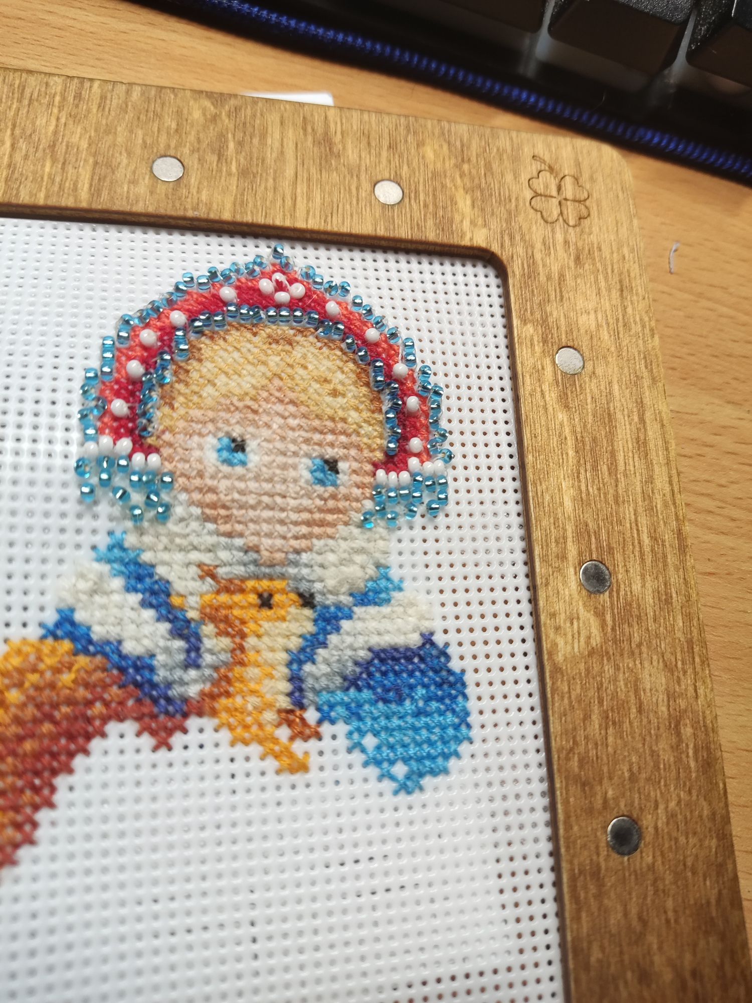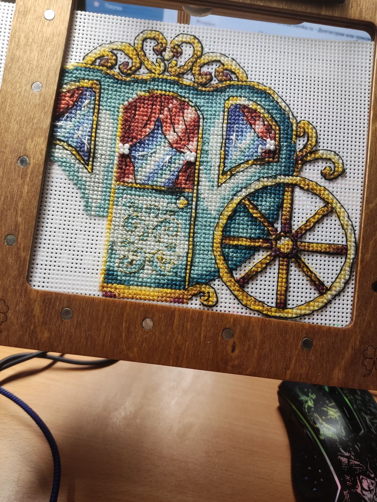 10 февраля 2024 Вторым финишем стал старт этого января - Золушка от М.П. Студии. В этой работе я впервые столкнулась с катышками ПНК. Неприятно, но не критично. Больше скажу о количестве ниток - каких-то осталось прямого много, а каких-то начатый отрезок в две нити. Будьте внимательны Отдельная песня - металлик. В карете золотистый цвет вел себя в 2 нити куда как приличнее. Да, по ключу и там и там надо было в 4, но это было форменным издевательством и я сделала в 2. Так вот синий это... Это нечто он и не ложился, и рвался, и.. в итоге на рукавах я сделала его а 2 нитки, а на шее и в ручке сумочки прошлась по два раза и получилось в 4, но советую делать име6но так, а не вышивать сразу четырьмя нитями. Бисер пришивала ниткой Титан 100 из своих запасов. Вышивалась в пару к карете и будет вместе с ней подарена одной замечательной девочке на 8 марта. Bogdan сказал(а) спасибо Поделиться сообщением Ссылка на сообщение