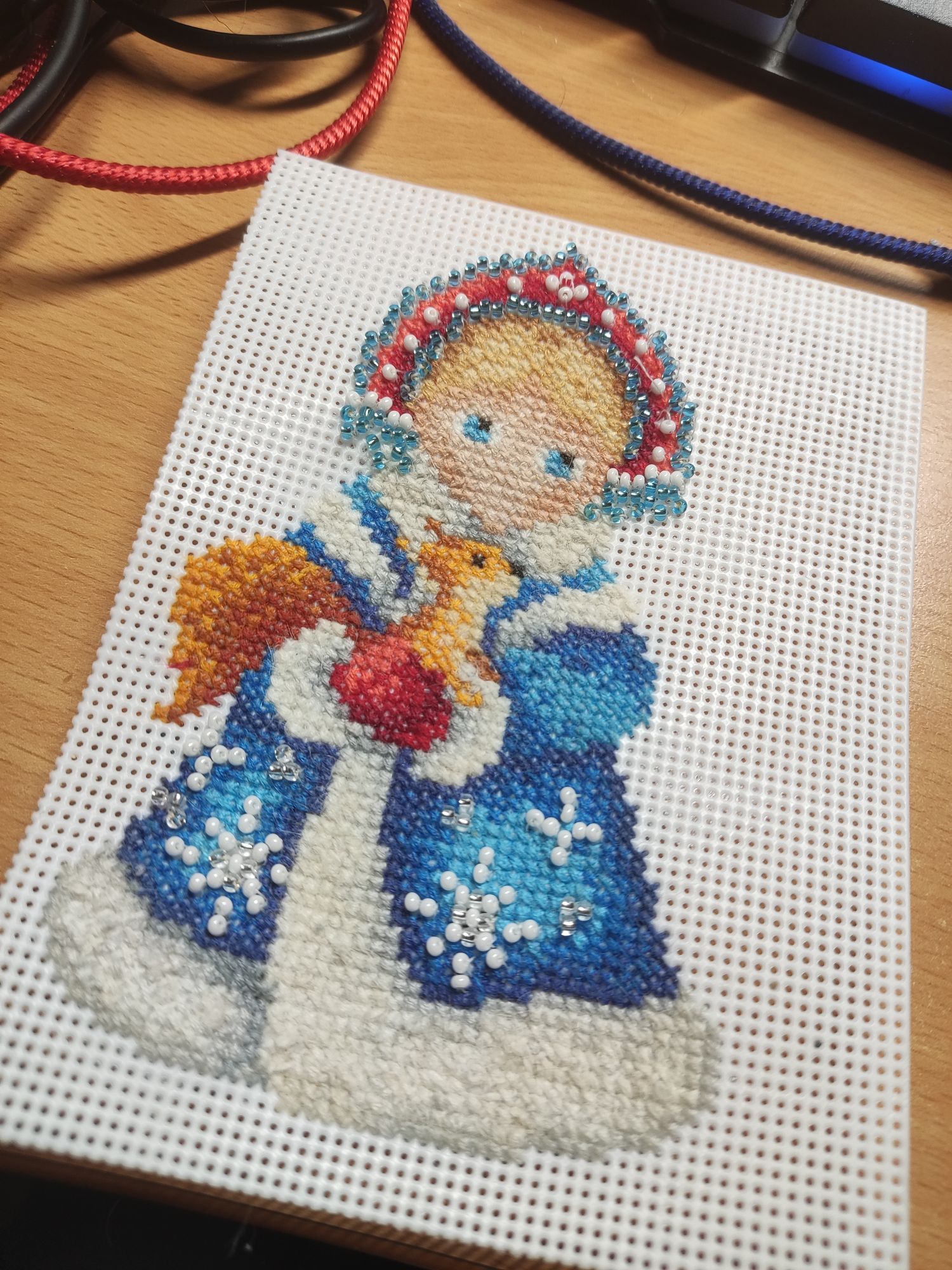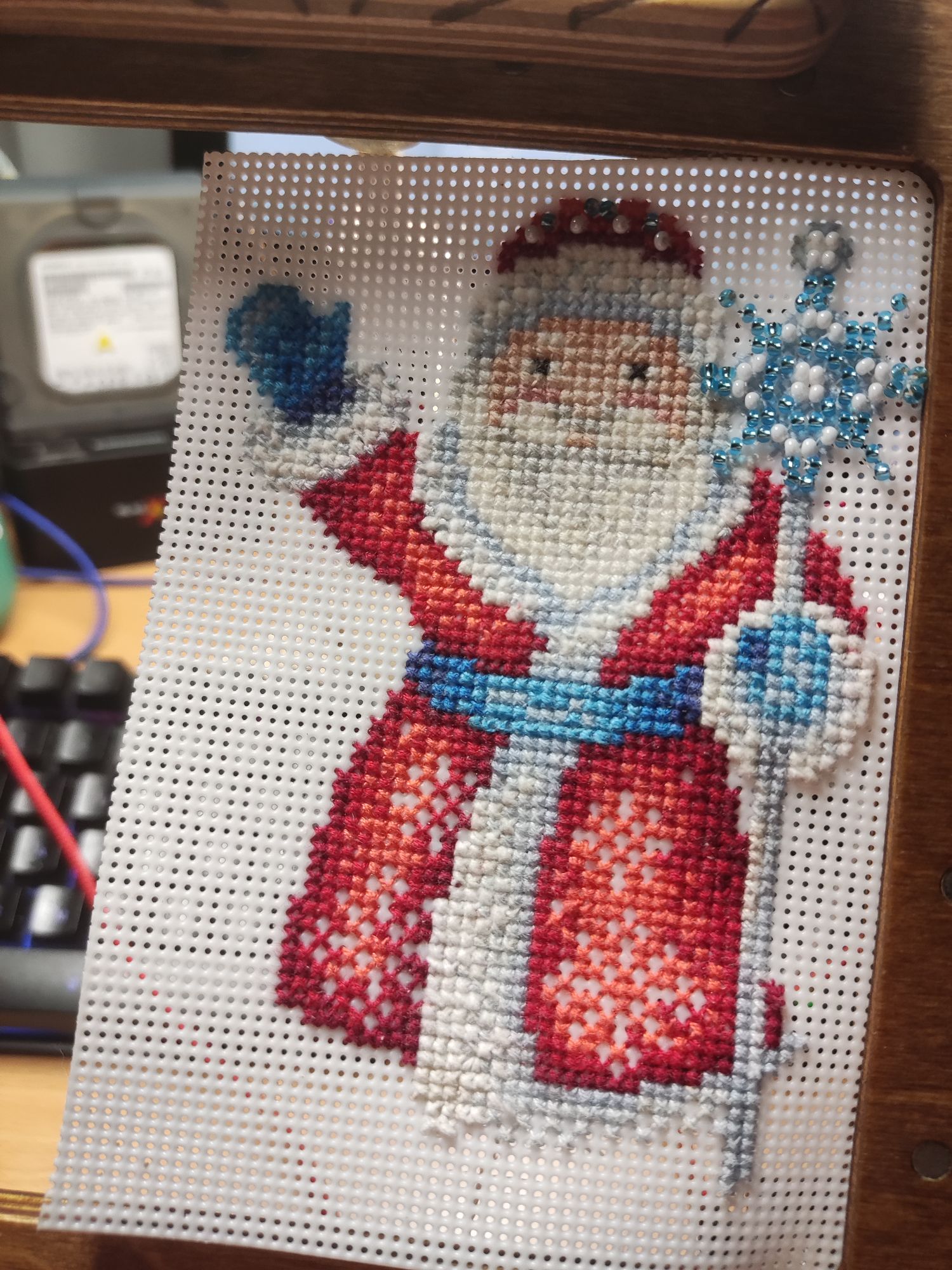 25 апреля 2024 На этом со "старыми" процессами всё. Остальные пока отложены. Но я вернусь к ним позже. Так или иначе. Все, что показала выше будет в той или иной мере вышиваться на постоянной основе. Есть у меня и финиш. Снегурочка готова! на задней стороне заменила нитку виспер на Гамму Клауд - пошло намного легче. Для пластика она подходит лучше. Снегурочка вышла чудесная. Ну и в компанию к ней и Ёлочке начала Деда Мороза. Хорошо, что мне подруга подарила эту парочку на Новый год. М.П.Студия собирается выпускать новых ёлку, Дедушку и Снегурку. Боюсь как бы эту парочку не сняли с производства. Но а любом случае у меня они будут. В Мех шубы и шапки дедушки тоже добавляю Клауд. На этом пожалуй всё. Паучка покажу, когда доделаю бек на верхней части и придет время переставлять пяльцы. Всем всего самого хорошего доброго и тёплого! Забава_ сказал(а) спасибо Поделиться сообщением Ссылка на сообщение