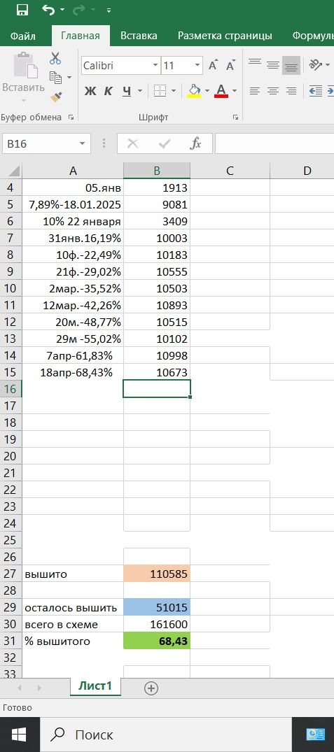 19 апреля 5 часов назад, АлёNка сказал(а): Надя, наверное есть 70%, какая красота! Спасибо, Лена. Не дотянула до 70, кончилась вертикальная полоса. Залезла левее, вроде была мысль дошить до ровно 70, но раздумала. Тут 68,43%, считается на каждый день по эксельской табличке. АлёNка, Хозяйка смешных зверей, svetlana62 и 1 другой сказали спасибо Поделиться сообщением Ссылка на сообщение