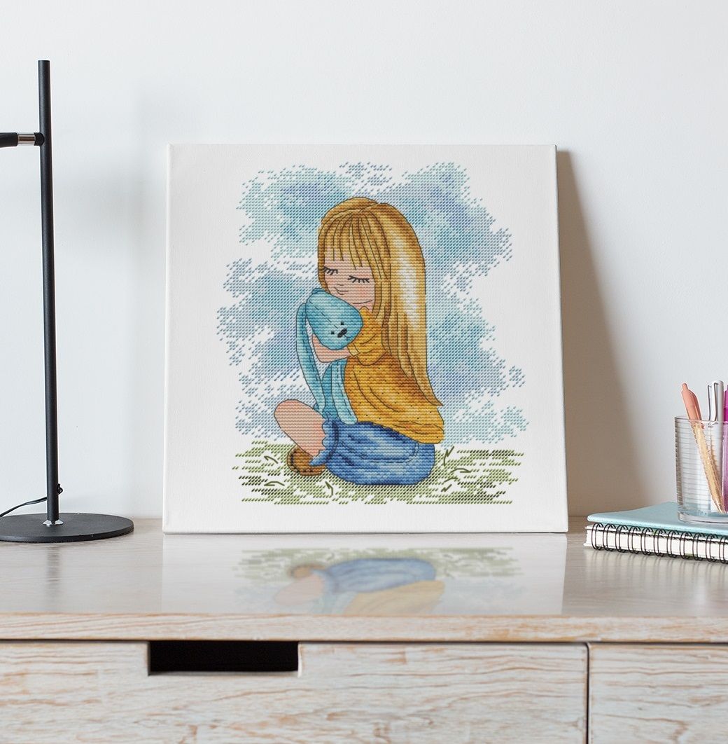 18 февраля 2022 2 минуты назад, annagutova сказал(а): Схема "Любимая игрушка" по иллюстрации Милы Гончаровой. Размер 98 х 111 крестиков. 19 чистых + 2 бленда из них, нитки ДМС. Используются крест, полукрест (фон), бэкстич (на 99,9% счетный) и фр.узелки (горошек на кофточке, можно заменить бисером или не вышивать вообще) Готовая работа будет отлично смотреться и в прямоугольной и квадратной рамке. Или даже в подушке (посмотрите фотогрфии для вдохновения). Схема в формате ПДФ и сага, можно купить здесь же на сайте. Чудесная, нежная разработка! Особенно нравится лёгкая тень улыбки из- под ресничек! Спасибо! annagutova сказал(а) спасибо Поделиться сообщением Ссылка на сообщение