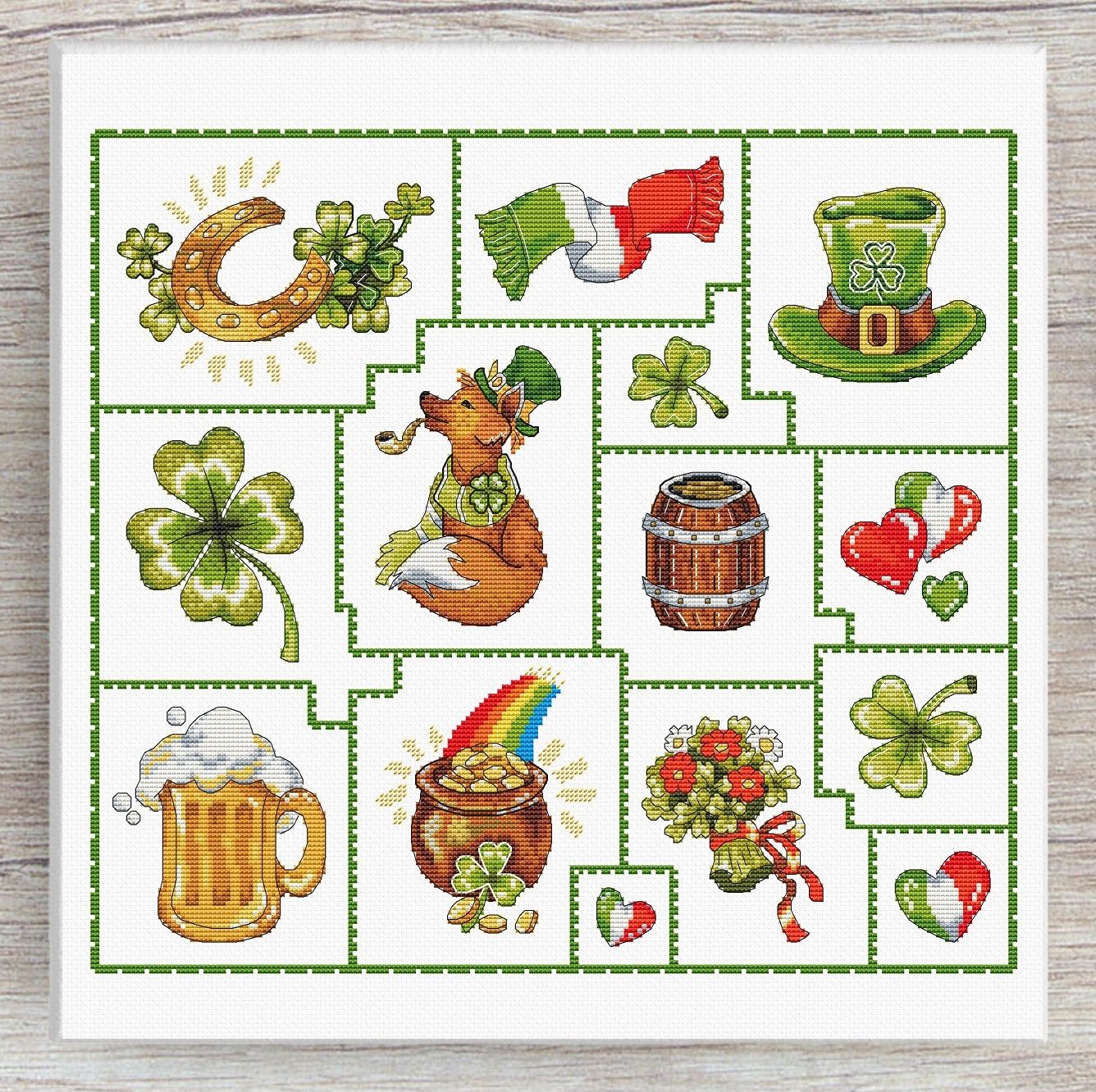 18 мая 2022 Новая схема! Хотя нет, какая же она новая. Сэмплер День Святого Патрика я нарисовала еще в 2018 году по иллюстрации Алены Ченчик. Примерно тогда же мне написала вышивальщица из Ирландии и спросила не хотела бы я перерасположить мотивы и оформить их в этакие рамочки как часто делают в сэмплерах. Я тогда что-то ответила и благополучно об этом забыла. А месяц назад эта же самая девушка написала мне снова. Она сказала, что за 4 года не смогла найти другой схемы в этой тематике, которая понравилась бы ей также как моя. И что она коллекционирует вышивки именно вот в таком стиле (в рамочках), в доказательство она даже прислала фотографии своего дома. Короче, рамочки так рамочки подумала я. И так мне этот вариант понравился, что подумываю вышить его самой. Кстати, подковку я уже вышивала и она просто чудесна (смотрите на фото) Размер 205 х 187 крестиков. 25 чистых + 4 бленда из них. Нитки ДМС. Используются: крест, полукрест, бэкстич, 3 фр.узелка. Для покупки пишите мне личное сообщение. Схему можно купить здесь же на сайте WhiteMoth, lamina-65, ЛАДОМИРА и 4 других сказали спасибо Поделиться сообщением Ссылка на сообщение