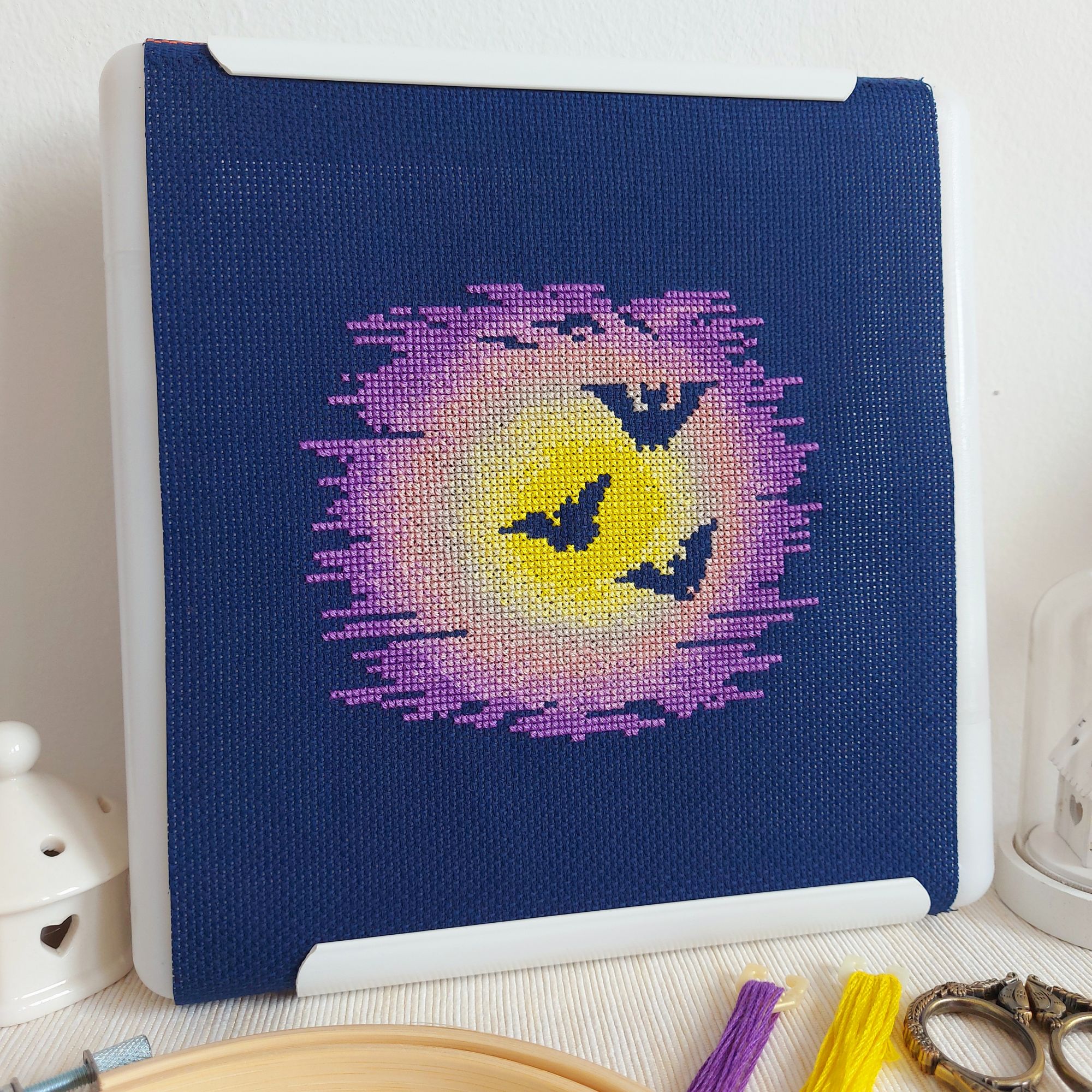 16 сентября 2022 Нарисовала и вышила "Ночь на хэллоуин". Отличная идея для подарка любителю этого события. Можно вышить в качестве обложки на блокнот, украсить сумку или одежду, или сделать открытку.. в общем, вариантов куча. Размер 76 х 65 крестиков. Используются 8 чистых + 3 бленда ДМС. Только полный крест. Обратите внимание, что летучие мышки не зашиваются, поэтому шить рекомендую на темно-синей или черной основе. Но если решили выбрать ткань светлых оттенков, то просто зашейте силуэты темными нитками. Схему можно купить здесь же на сайте или в моей группе в ВК https://vk.com/club162064386 Surik, tamara.34, monstrochka и 1 другой сказали спасибо Поделиться сообщением Ссылка на сообщение