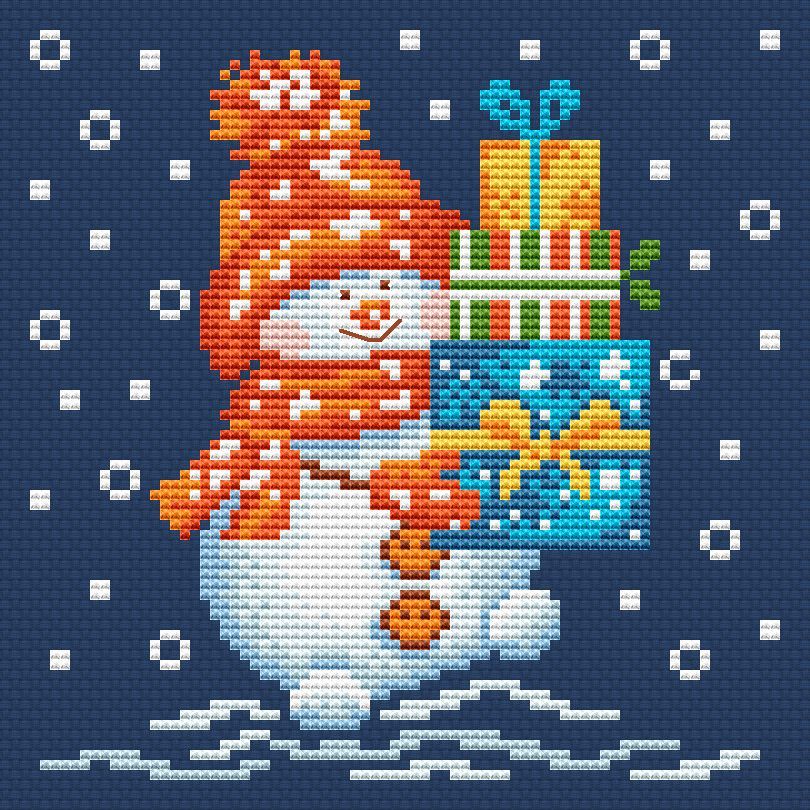 18 ноября 2022 Завершаю эту рабочую неделю милым Снеговичком. Размер 75 х 75 крестиков, 13 чистых цветов ДМС (или их аналогов СХС, Рояль). Используются полный крест, пара стежков бэкстича и два фрузелка (можно заменить бисером, или не шить вообще). Работа над ним не займет у вас много времени, зато результат будет радовать не один год. Схему можно купить здесь же на сайте или в группе в ВК https://vk.com/club162064386 Елизарочка и monstrochka сказали спасибо Поделиться сообщением Ссылка на сообщение