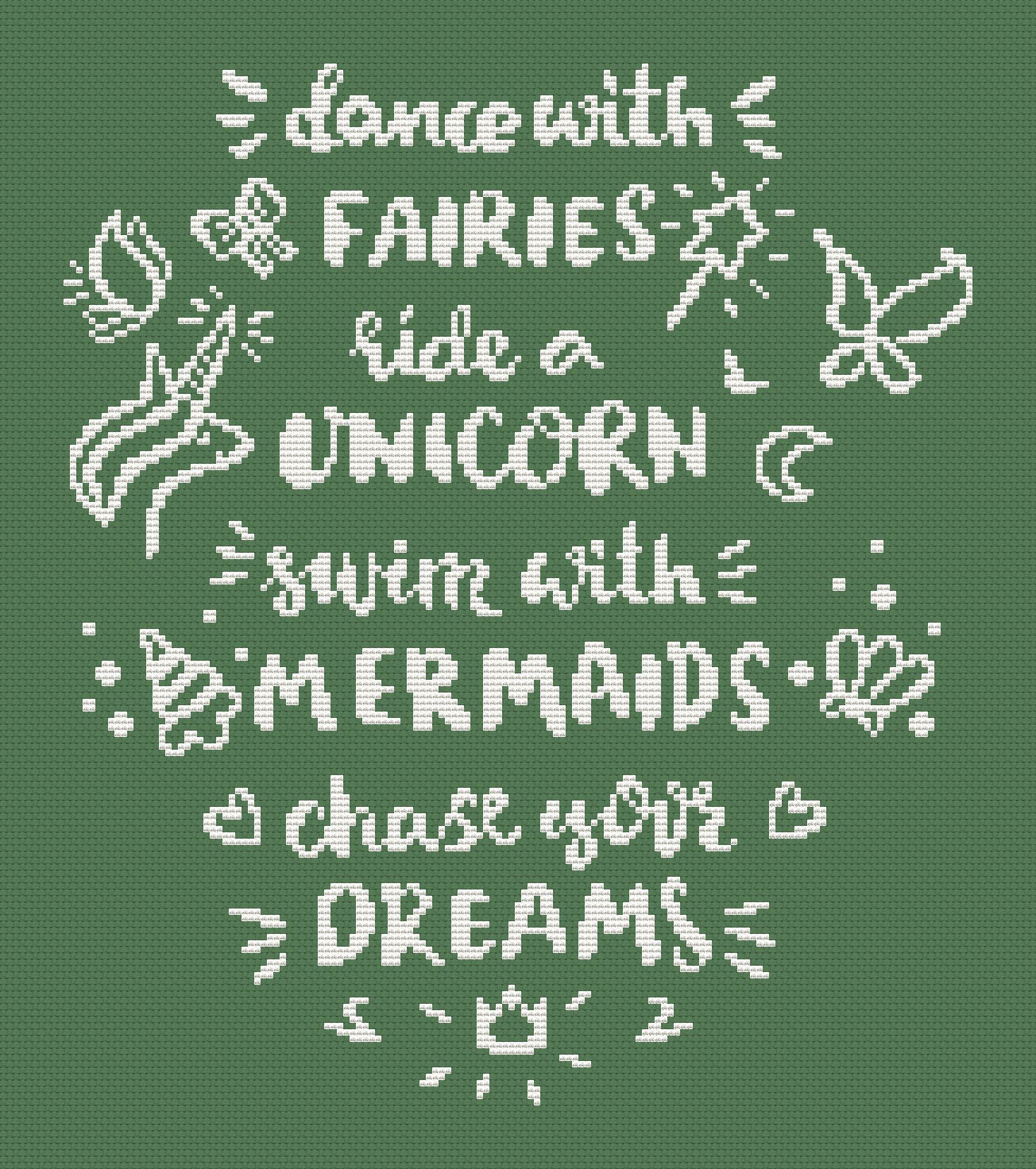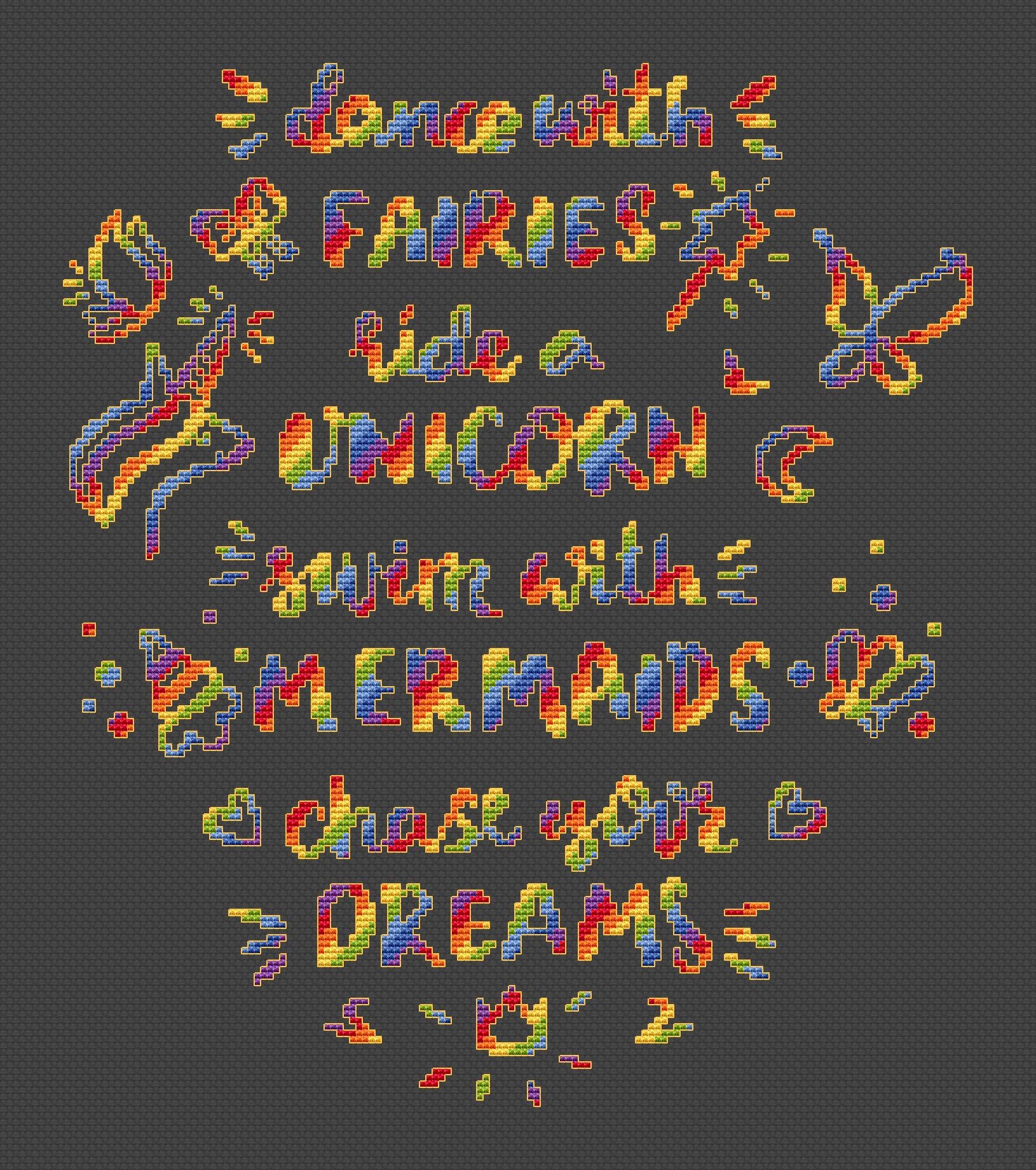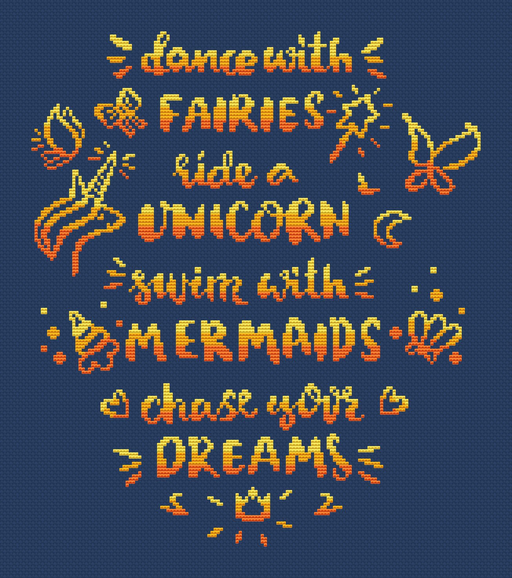 8 ноября 2022 Я продолжаю делиться с вами всякими латинскими буквами. Эту схему меня попросила нарисовать приятельница. Ее зацепила сама фраза и она захотела вышить ее в подарок дочке. На русском текст звучит примерно так: - Танцуй с феями - Катайся на единороге - Купайся с русалками - Гонись за своей мечтой Я подумала, что я тоже не против заиметь себе такое напутствие, поэтому схему сделала. В этой работе, просто бесконечный простор в выборе материалов. Можно сделать градиентом (как у меня в желтом варианте), причем соблюдать ключ не обязательно, можно подобрать нитки из ваших запасов в любой цветовой гамме. Можно вышить все одним цветом, контрастными вашей основе. Ну, и конечно же, меланж, просто идеален для таких работ. Кстати, я завтра планирую посетить рукодельную выставку в Милане и хочу найти под этот дизайн канву и меланжевые нитки. Про поездку вам обязательно расскажу. Размер схемы "Танцуй с феями" 143 х 164 крестика. В варианте с градиентом используются 3 цвета. Только полный крест. Схему можно купить здесь же на сайте или в ВК https://vk.com/club162064386 monstrochka и Путешественница сказали спасибо Поделиться сообщением Ссылка на сообщение