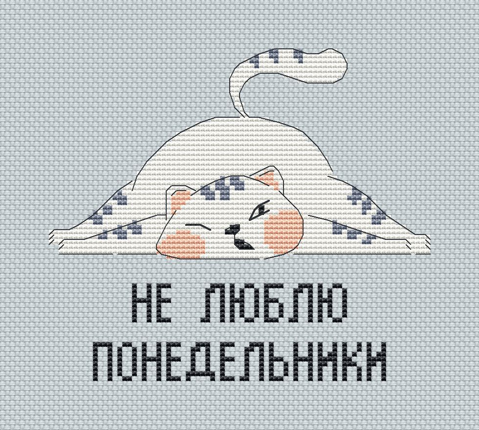 31 марта 2023 Схема Не люблю понедельники Размер схемы 78 х 57 крестиков (англ.текст) или 78 х 68 крестиков (рус.текст). Включены оба варианта. Используются 4 чистых цвета. В ключе номера ДМС, но при такой простой цветовой гамме, вы наверняка найдете что-то подходящее в ваших запасах. Купить схему можно здесь же на сайте или в группе в ВК https://vk.com/club162064386 tamara.34, monstrochka и lamina-65 сказали спасибо Поделиться сообщением Ссылка на сообщение