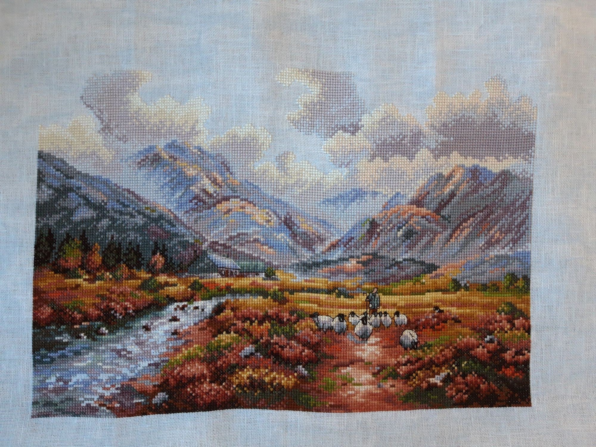 18 июня 2019 Не прошло и года, я со своими готовыми горами Кое что все таки изменила: самое главное это конечно пастух) Переделала ему голову и теперь он меня вполне устраивает. Речку зашила белым крестом в 1 нить и добавила пару линий бэка на домике, на горах его не делала. Готовая работа очень очень нравится Из недостатков набора могу отметить чб схему и малое количество ниток. Многие цвета остались буквально по несколько сантиметров, а один даже пришлось докупать ЛАДОМИРА, Муняша, Lenara и 28 других сказали спасибо Поделиться сообщением Ссылка на сообщение