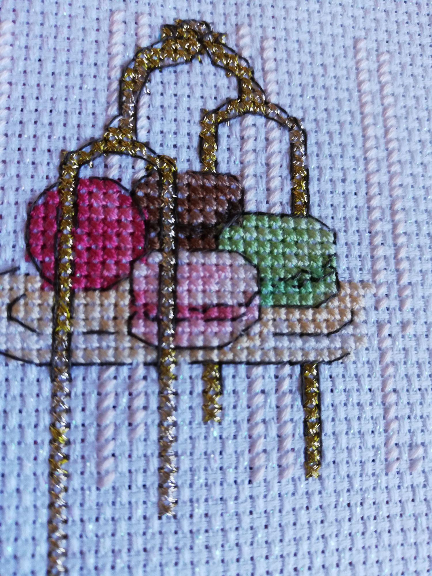 11 апреля 2021 Девочки, примете в компанию? Все фото не в гаечку, спасибо. Я к вам с набором Indulgence , это дизайн Марии Диаз. Один из вариантов перевода, подходящих сюжету, потакание своим желаниям. Не стала заменять аиду, может и нежнее бы смотрелась работа, но аида с перламутром и я оставила,будет красиво. Немного изменила ключ, вертикальные полоски полукреста шьются в одну нить, но у меня они были совсем не заметны, не так как на обложке и я стала шить в две. На данный момент вышита верхняя часть с макарунсами (или макарунами) . Бэк оказался несчетным и пришлось поискать острую иголку, но шьется в целом логично. На обложке не видно, но здесь два вида металлика. Вот с ним я воюю, не хотят крестики ровно ложиться, но ничего, одолею и их) Шить буду очень медленно, так как по начинала целую кучу процессов. Принесу сюда продвижения,расскажу как будут впечатления дальше. ЛАДОМИРА, Luba52, tessykat и 19 других сказали спасибо Поделиться сообщением Ссылка на сообщение