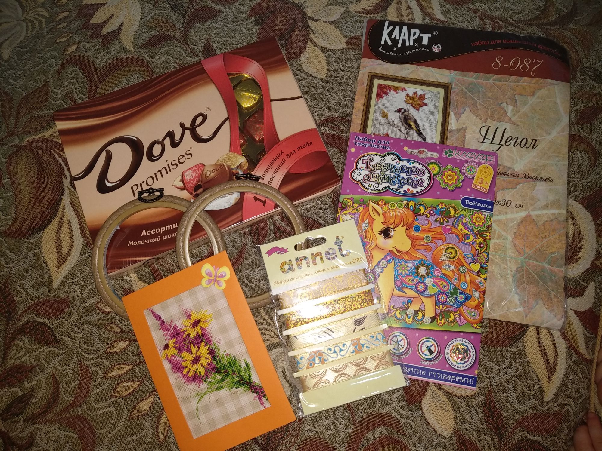 4 сентября 2019 Вчера не было сил делиться всей красотой, что я получила от девочек Sunny981 и сегодняшней именинницы KoViVi. Юлечка порадовала и меня и мою маленькую Васильну) Мне так не хватало маленьких пялец! Из лент попробую освоить канзаши, благо есть кому банты делать)) Открытка яркая, осенняя. А щегол из списка хотелок) У Кларт замечательная серия по сезонам с птичками) Спасибо большое, половины шоколадок уже нет и это не яИ упаковано все было в цветочную бумагу, праздник к начался с упаковки) Скрытый текст Вот делала бы почта России красивые пакеты, пусть чуть дороже, зато приятно получать Вика решила исполнить половину моих хотелок) Тут и водорастворимая канва, которую я никак не могла купить, и набор из хотелок, и минивышивка от DMC, которая будет жить на кухне и много других приятных мелочей. Открытка яркий цветик-почтисемицветик с магнитом для иголочки. Шоколад убран повыше, чтобы растянуть сладкое удовольствие, а то слипнется что-нибудь. Магнитик и деревянные животинка и полотенечко с тропическим фламинго) Девочки, спасибо вам огромное за такие подарки и тёплые пожелания! У меня слов просто нет, как я вам благодарна. sunny981, KoViVi, dolli7 и 8 других сказали спасибо Поделиться сообщением Ссылка на сообщение