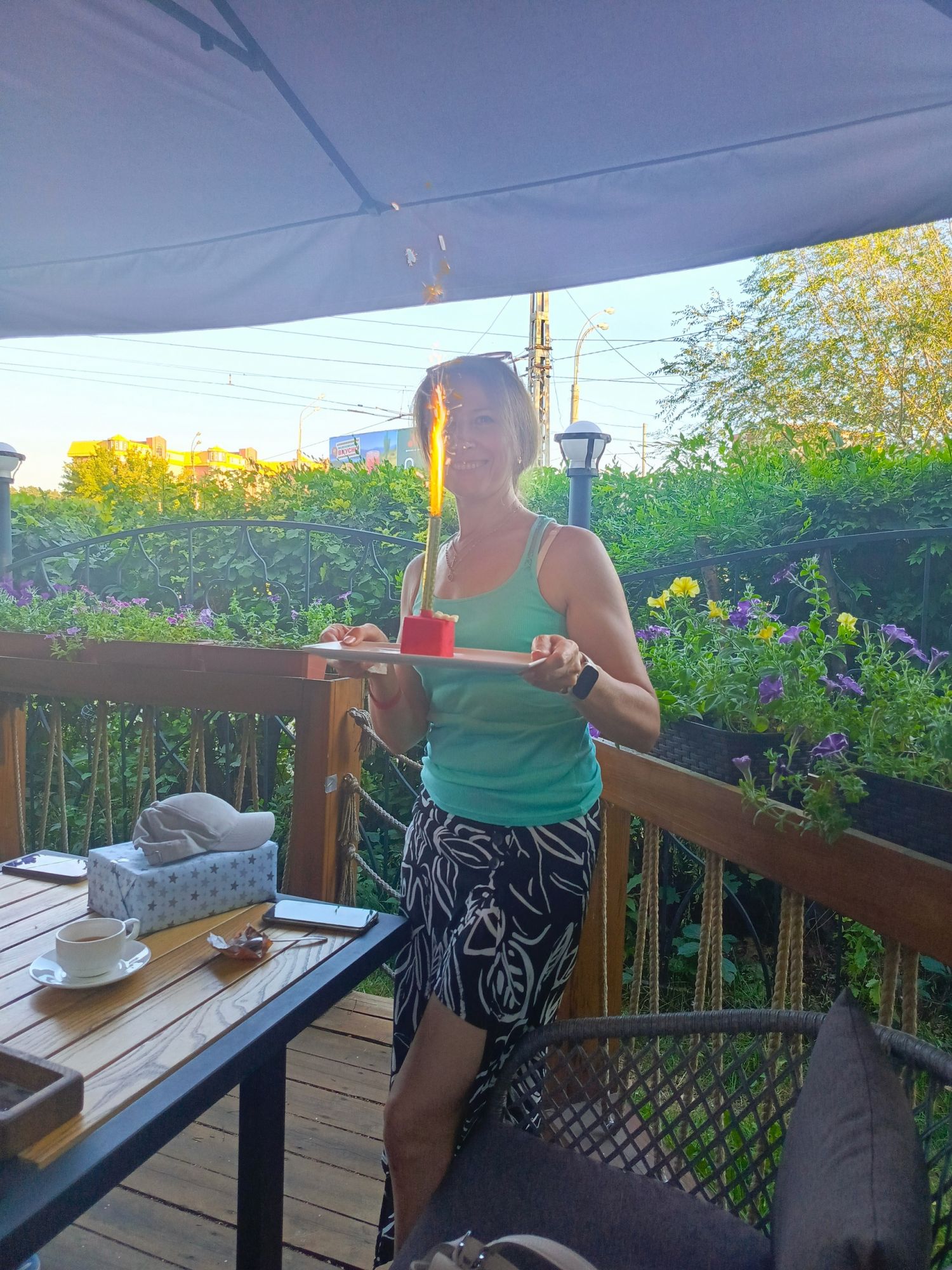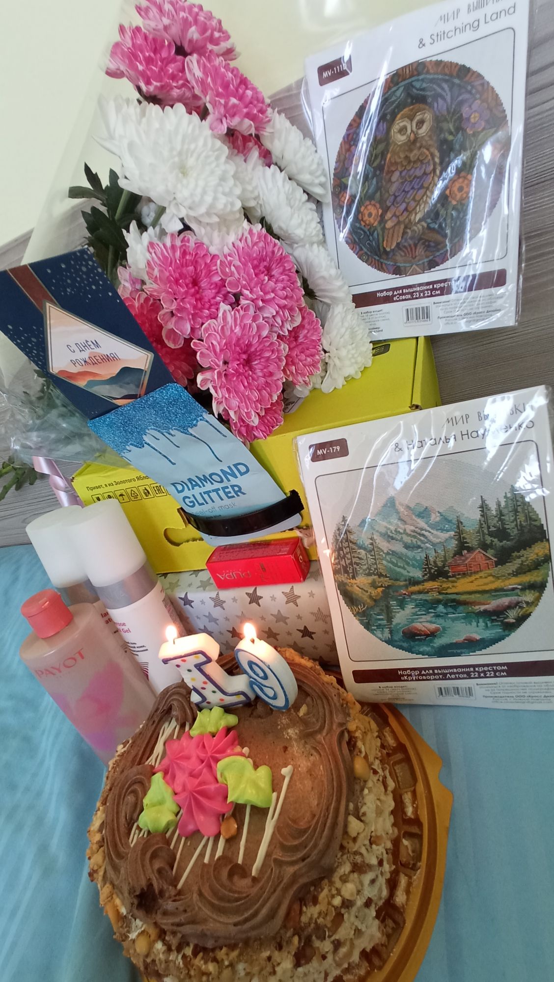 12 июля Доброго, летнего и солнечного дня!!!! Спасибо, родные, за поздравления, было очень приятно. В этот раз у меня был День рождения - грустный праздник. С 8 июля началась жара, которую я люблю, до +36. До этого было +16+18+20, дожди и ливни. А с 7 июля я ушла на удаленку с температурой, пропавшим голосом и заложенным носом. Как говорится, не до чего. 10 стало чуть легче, мы пошли в хваленый Ресторан честных цен - но по факту были разочарованы. Готовят, так себе, ценник совсем не бюджетный. Мальчики мои порадовали подарками и цветами. 11 Юля написала код, Егорка сгонял в ВБ.... Я пищала от восторга. Юля, спасибо за любимую совушку, горный пейзаж шикарный. Конечно же я все пооткрывала. Очень нежные цвета. Теперь и у меня есть кружочки. Вечером приехал сын из Самары с подарками и цветами. По итогу просидели до двух ночи. 12 пошли уже всем составом в другое кафе Здрасте щастье - это был настоящий праздник. И вкусно, и приятно. В обоих заведениях подарили торт со свечой как сильно влияет прическа - завязала пучек и как тетя мотя, два разных человека) Касаемо подарков: средства для ухода за кожей лица, электрическая зубная щётка, наборы для вышивания, босоножки, комплект постельного белья, конвертик. Егорка купил маску для лица. ещё и на работе ждёт конверт. На эти деньги хочу купить кроссы Рита (пума) для бега. Вот такой небольшой отчет. Благодарю вас за поздравления Marusya1978, Raduga777, Путешественница и 12 других сказали спасибо Поделиться сообщением Ссылка на сообщение