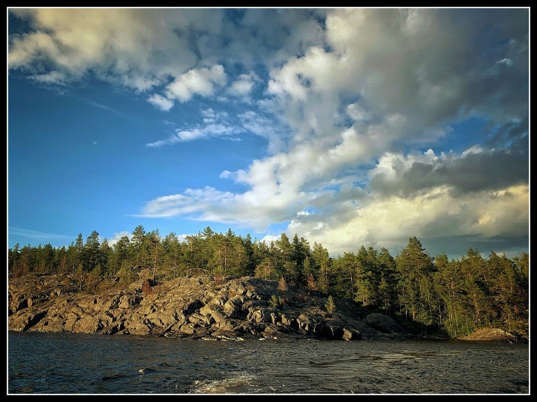 6 апреля 2024 Утро шестого - последнего дня путешествия. Мы приближаемся к о.Валаам - это самый большой остров в Валаамском архипелаге. Всего Валаамский архипелаг насчитывает около 50 больших и малых островов. Острова уже совсем рядом, на ближайшем из них мы видим Никольский скит с Никольской церковью, которая долгое время служила маяком для кораблей. Её верх похож на остроконечную крышу терема, которую венчает золотистый купол. Название Валаам в переводе с финского обозначает «высокая земля». В истории Валаама много преданий, легенд и загадок. В научной среде нет единого мнения о датах первых упоминаний об острове, о времени основания главной достопримечательности - Спасо-Преображенского Валаамского мужского монастыря. Достоверных источников о создании обители нет. Есть только предания церковные. По преданию апостол Андрей Первозванный, проделав путь по реке Волхов, добрался до Валаама и благословил горы острова крестом. Эту историю записал в своей «Повести временных лет» летописец Нестор. Монументальный поклонный крест в честь предания об апостоле Андрее Первозванном установлен в Никоновской бухте. Он выполнен из бронзы по проекту скульптора Андрея Клыкова. Монастырская традиция утверждает, что основателями святой обители являются греческие священноиноки Сергий и Герман. Произошло это событие в период Крещения Руси, т.е. в X-XI веках. Сведений об истории монастыря до XVI века очень мало. Монахи подвергались постоянным нападкам шведов. Чтобы сохранить мощи основателей от уничтожения, их перенесли в Новгород в 1163 году. Когда обстановка стала спокойнее, монахи вернули святыню обратно. Они спрятали мощи глубоко в скале. И сейчас они покоятся под фундаментом собора, глубоко внутри скалы. В XVI веке Валаам пострадал от чумы и военных действий со шведами. После заключения мира в 1595 году царь Федор Иоаннович приказал выделить из казны деньги на восстановление обители и подтвердил ее право на владение землей и вылов рыбы. В XVII веке монастырь был в запустении. В начале века он подвергся разорению, а по условиям Столбовского мира почти на сто лет перешел под управление Швецией. В начале XVIII века, когда по Ништадтскому миру Валаам снова отошел к России, при Петре I началось возрождение обители. На территории построили несколько каменных церквей, колокольню, кельи для монахов и настоятелей, трапезную, кухню, монастырские службы. На берегу возвели лавки для купцов и гостиные комнаты. Расцвета Валаам достиг в XIX веке, когда настоятелем стал игумен Дамаскин. При нем был возведен храм Святителя Николая Чудотворца, несколько церквей, странноприимный дом для бедных финнов, хозяйственные постройки и заложен новый скит на острове Предтеченском. На Валааме бывали российские императоры - Александр I и Александр II, известнейшие художники Шишкин И.И., Гене А.В., Куинджи А.И., Клодт М.К. и Рерих Н.К., писатели Лесков Н.С., Тютчев Ф.И., Апухтин А.Н. и даже Александр Дюма-отец, композиторы Чайковский П.И. и Глазунов А.К., ученые Менделеев Д.И. и Миклухо-Маклай Н.Н. В 1917 г. на островах Ладожского озера было более 1500 монахов, много скитов и мест отшельничества. После революции Валаам оказался на финской территории и поэтому избежал репрессий. Большинство братьев взяли финское гражданство. В 1923 г. финской православной церковью был принят новый календарь, часть монахов 