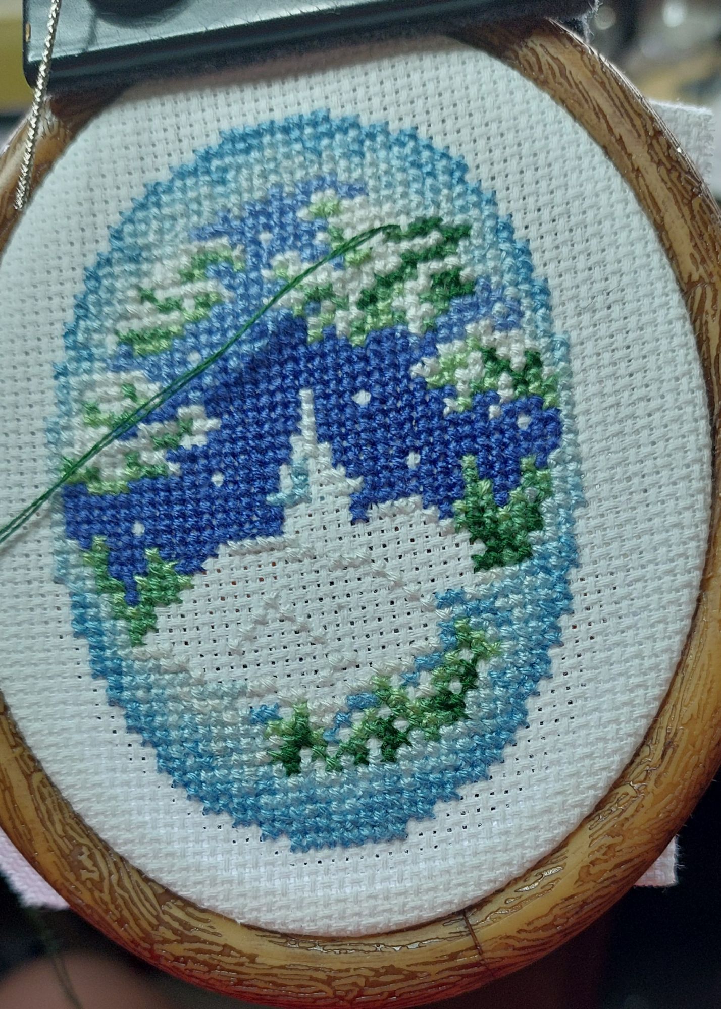 12 ноября 2021 Пора обновить новое и хорошо забытое старое:) Лазоревый звон от овна шьется легко, не без ошибок, но за 30% мы перевалили. Решила идти вниз и вышивать салфетку, чтобч потом взмыть в лазоревую высь и наслаждаться звоном колокольчиков:) Наконец-то после всех моих мелких процессов и прочего безделья вторым процессом в моей нехитрой ротации встала Шоколадная Ночь, а то лежала себе... Дошила второй ряд ( я беру 30 крестиков по высоте и всю длинну работы). Появился первый домик, да и дорожка в снегу прорисовывается. Издалека работа выглядит прекрасно, вблизи.... Поняла, что такие работы мне шить не нравится, не люблю понимать, что я вышиваю, только отодвинув работу вдаль и сверясь с исходником. Вблизи вся эта мешанина выглядит совершенно несуразно. Испробовав разные способы остановилась на участках 3×4 клетки -1200 крестиков, удобно зашивать, и видишь какой-то результат быстрее, чем когда шьешь весь ряд сразу. Идет в моем обычном темпе, 18600 крестиков отшито. Новым станком очень довольна, продолжаю наслаждаться как формой, так и содержанием. Вот он стоит, ждет меня солнечным днём Осень полна чудес, поехали за покупками по Францию, а там продают тюльпаны, живые, в ноябре! А недалеко от домп заколосились маки в поле, удивительно видеть этих огненных красавцев в разгар осени:) К концу года мне надо еще вышить две малявки, скептического снегиря от Ирины Коноплич и рыжую панду. Но о них в следующий раз;) nogres, Lucia-del-Umago, lenning и 3 других сказали спасибо Поделиться сообщением Ссылка на сообщение