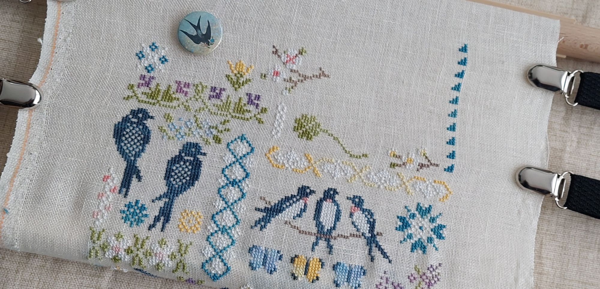 17 января 2022 Год начался продуктивно, впрочем, все по плану:) Дошила кота Финиш: Шила я, значит, снег, а он такими сероватыми полукрестами вышивается и все думаю, чего я этуаль то не взяла, блестел бы, да и по цвету почти одинаковый... ну значит думаю и шью, шью и думаю, а распускать то жалко уже. Ну и я в итоге решила а дай ка я попробую кое-что и пошла этуалем уже поверх отшитых полукрестов в одну нить, но не по каждому, а с пропусками пару тут, один через 5 клеток и так далее, заняло, может пол часа, но эффект получился просто бомбичечкий. Картина явно в облачную погоду и снег в облачную погоду поблескивает слегка, но не горит. Я не стала брать блестящую основу сюда, как раз потому, что она Слишком блестящая... А вот так, прошивая этуалем, я как раз и получила очень деликатное поблескивание, оно не бросается в глаза и я понятия не имею, как его сфоткать, но если ходить мимо картины, то звездочка зажигается то в одном сугробе, то в другом. Короче настоящий снег получился, советую этот прием, если нужен именно деликатный блеск, уверяю, что останетесь в восторге. Хотя финиш и быстрый, я не советую брать эту работу с намерением отдохнуть, счет и шахматка не покидали до последнего крестика. А вот результат потрясающий, объем, поза, хвост этот забавный, все просто обалденно! Видела эту вышивку и на канве и на равномерке теперь, не могу сказать, что на какой-то основе она смотрится хуже, оба варианта хороши. На прошедшей неделе закончила очередной ряд своей шоколадной ночи. Перемотала до начала, чтобы запечатлеть первую часть, следующий ряд уже не влезет в ширину рамы, так что первый домик будет потихоньку забываться, ну а новые детали появляться. Удовольствие зависит от положения Марса в Меркурии, чес слово, один день я копашусь среди одиночек и кайфую, другой шью шахматку и подбешиваюсь, иногда мечтаю, что вот закончу ее и больше такие работы никогда никогда, а в другой день думаю, что буду скучать по такому стилю вышивания, потому что это именно стиль вышивания, отличный от стандартных наборов. Ну и закончив кота начала настоящую отдыхалочку. Совиный Лес. Ласточки. Нитки дмс от Совиного леса, основа Белфаст 222. Вот уже три прилетели:) Надо сказать, что сюжет выбран не спроста. Для швейцарцев ласточки это практически весенний культ, как в Америке кролики. Обсуждения а прилетели ли ласточки можно ухватить любопытным ухом повсюду в весенее время, кто-то их уже видел, кого-то в этом году обделили вниманием, у кого-то вьют гнездо. И так год за годом, весна приходит, когда прилетают эти милые птички, а окружающие слегка сходят с ума. Высоко в горах есть свой подвид ласточек, как и всё в горах они больше, ласточки там размером с небольшого голубя. И вот кружат они над нашими просторами и радуют простой швейцарский народ. В этом году к их прилету хочу повесить эту картинку у себя дома, так что готовлюсь заранее. Основу подбирала долго, производитель советует коричневатую, а мне хотелось цвет как на фото на сайте. Такой желтый нашелся у пермина, но он снят с производства и в линде, но там уж слишком крупный каунт. Белфаст 222 слегка желтоватый, я планирую при оформлении подложить светло желтую основу под вышивку это придаст основе почти такой же, приятный, солнечный оттенок. Вот уж воистину отдыхалочка, ничего легче в жизни еше не шила:) nogres, Путешественница и Lucia-del-Umago сказали спаси