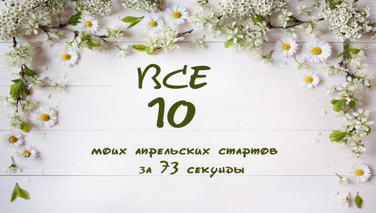 19 мая 2019 1 час назад, Victoria Lawyer сказал(а): У меня получилось уместить все 10 моих апрельских стартов в 73 секунды)) Вика, здорово получилось, очень наглядно! Victoria Lawyer, Мультифрукт и lovingberry сказали спасибо Поделиться сообщением Ссылка на сообщение