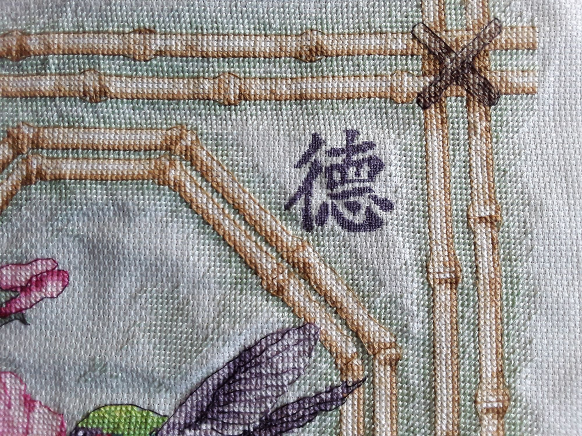 26 июня 2019 Всем доброго! Принесла первый (наконец-то!!) Апрельской финиш. Даже жалко было прощаться с бамбуком. Такой он прекрасный, успокаивающий. Сегодня он выглядит вот так так. Хочу показать его отдельные элементы. Центр с чудесной тропической птичкой . Мною привнесенные иероглифы. Их взяла с celestial dragon терезы венцлер: добродетель, долголетие, счастье, мудрость. Все вместе: мой подарок младшему сынуле на окончание школы. Сейчас вышивку отдала подруге сшить наволочку на подушку. Сама терпеть не могу шить, да и не умею. Впервые жалко прощаться с дизайном . Dasika, Пушистая, Tata44 и 27 других сказали спасибо Поделиться сообщением Ссылка на сообщение