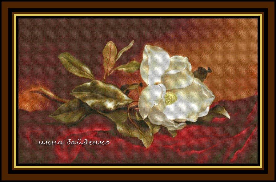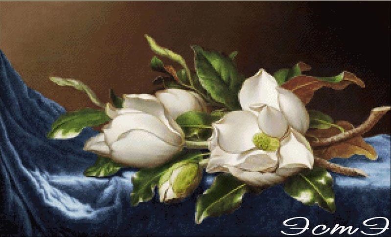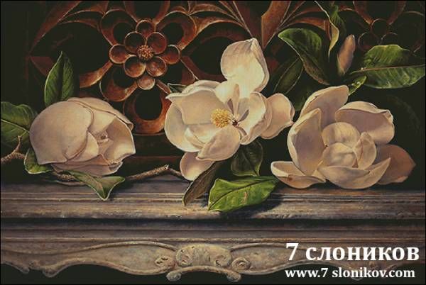 5 апреля 2019 Мартин Джонсон Хед Martin Johnson Heade (1819-1904) Орхидеи и колибри Чаривна мить Б-562, Bozenka #6847 Орхидея-каттлея и три бразильских колибри Bozenka #6608, Golden Kite дальше я без исходников - там почти одинаковые картины, разница примерно следующая - тут бутон, а тут он чуть распустился, тут веточка более мшистая, а там трава порастрепаннее от Scarlet Quince от Golden Kite Чаривна мить Б-632 Магнолии на золотом бархате Барышникова Людмила (avtor-shem) #4787, Слободяник Лариса (stitchdesigns) #8213, Фондукова Ирина (ЭстЭ) #18613 Магнолия на красном бархате Kustom Krafts 95067, Scarlet Quince, схема Инны Байденко, студия "Коша", Слободяник Лариса (stitchdesigns) #8215, Фондукова Ирина (ЭстЭ) #7957 Крупные магнолии на синем бархате Golden Kite, Scarlet Quince, Фондукова Ирина (ЭстЭ) #7958, Чаривна мить Б-577 а дальше то, о чем я говорила - почти то же самое, да не то Golden Kite, Слободяник Лариса (stitchdesigns) #8214, Goblenset 666 Golden Kite, Фондукова Ирина (ЭстЭ) #7956 А вот оригиналов этих букетов я не нашла, хотя очень похожи на Хеда: Luca-S B484, Luca-S G465, Goblenset 829 похожие работы есть у Clinton Broyles. Кстати, вот дизайн от 7 слоников Lara2808, Алоиза, Marusya1978 и 5 других сказали спасибо Поделиться сообщением Ссылка на сообщение