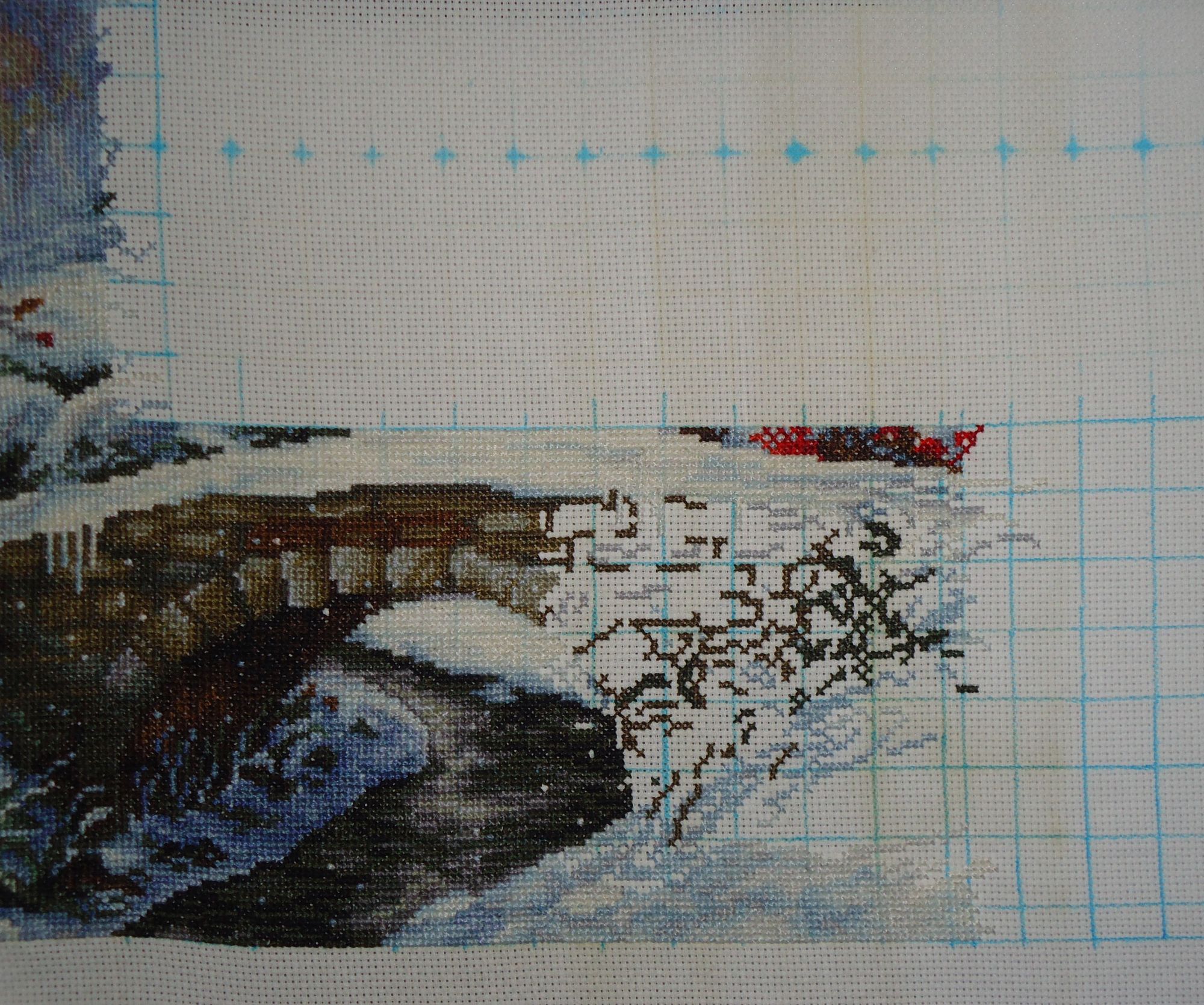 27 марта Доброе утро , дорогие жители и гости моего муравейника, недельный отчет . Вчера отчитаться не успела . Отчитываюсь сегодня. 1)"Зимний пейзаж". 7-ой и 8-ой лист. Добралась до третьего угла. Было: + Стало: Мост шикарный получился! 2) И я вписалась в совместник. Kustom Krafts# 97817"Denali Trio". Размер : 252х196 кр., канва №16 гамма-кремовая , 40 цветов (дмс+гамма). Крест в 2 нити. Будет: компл.:начало:( гаечка и фото этого процесса уже есть.) Привет от Мерлина и от Миши ( на плече я его уже показывала, а это фото на коленке) и на столе Всем пока. Сибирская Кошка, nata2017, irisheckin и 19 других сказали спасибо Поделиться сообщением Ссылка на сообщение
