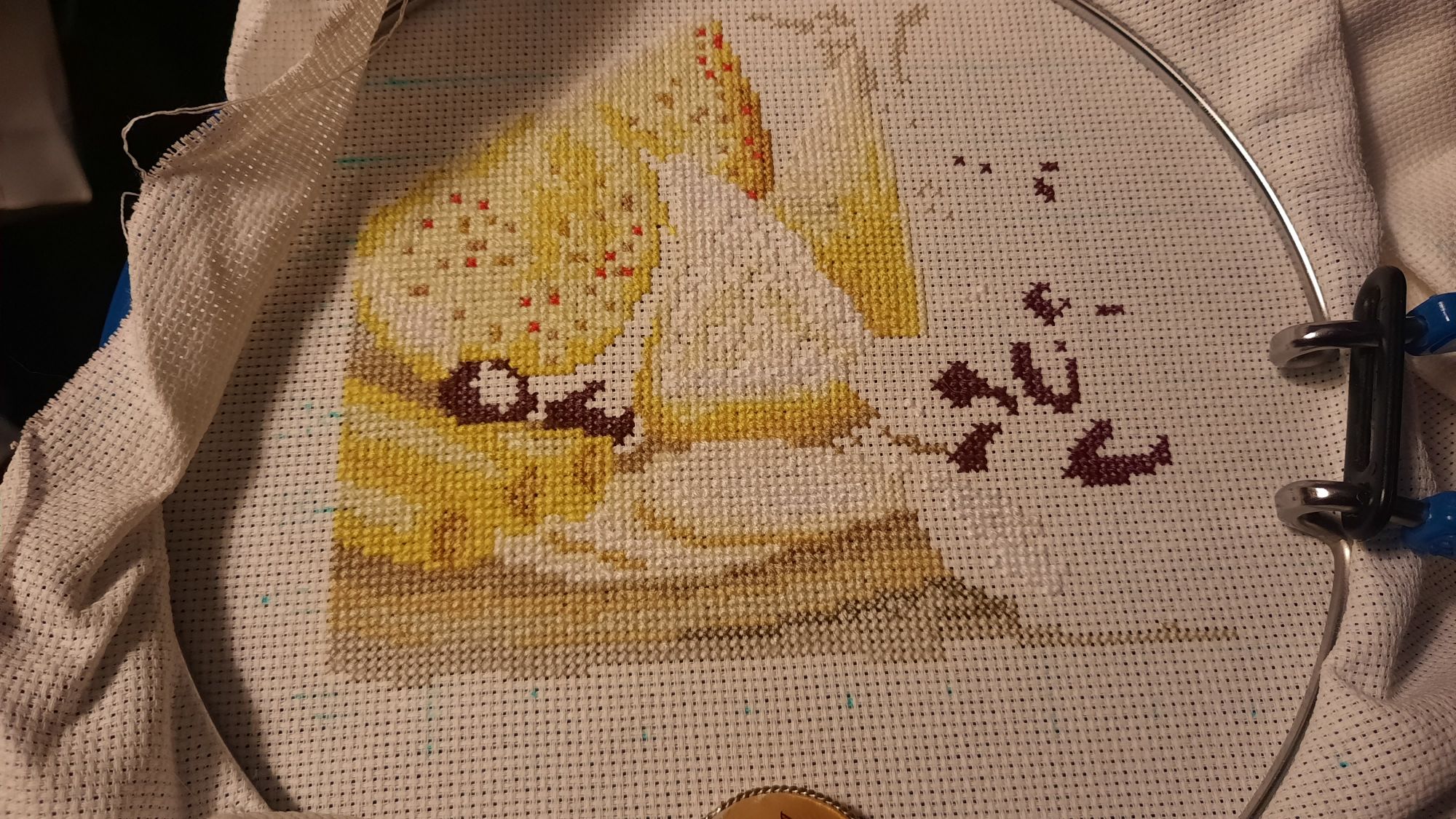 16 октября А между тем время летит.. И уже снова четверг. К концу года , мне кажется время набирает обороты, сразу после НГ все более или менее тянется, а сейчас моргнул - и неделя уже в прошлом.... А у вас так? За эту нашила 5% в ВанеГоге... я для себя сделала веху - показывать когда прибавлю не меньше 5%. Так что вот. Было: Стало . Осталось меньше 15% Свет в конце туннеля все ярче!)) Сыру досталось времени не много. Но там пошли яркие цвета - продвижение снова видно. Было: Стало: Альпинизм рвется в руки и хочет быть завершенным. Крестики псе. Там правда полукреста и бэка полно. Было: Стало: Болото. Это как отдых усталой душе... Нижняя часть была удобными горизонтальными участками. Верхняя такими же удобными вертикальными.. . Было: Стало: Нужно собрать себя в кулак и сделать бэк на кубышках. И можно чуть вверх пяльца переставить. Травинки целиком не влезают. И есть у меня старт. Футболка мужу подруги на ДР. Мы очень часто к ним ездим в деревню. Поэтому тема шашлычная) Схема от Медвежьего угла. Орден шашлыка. Сюжет будет один,самый главный. Начало: С вышивальным все. Еще я сшила косметичку с окошком поезда.. Швея я еще та, конечно. В автокаде расчертила выкройку.. в итоге в процессе ошибок, косметичка получилась странной формы) но дочка довольна , ибо: счастье - это путь"! На этом прощаюсь! Не болейте и берегите себя! Auria, Kattrielle, Lorans и 15 других сказали спасибо Поделиться сообщением Ссылка на сообщение