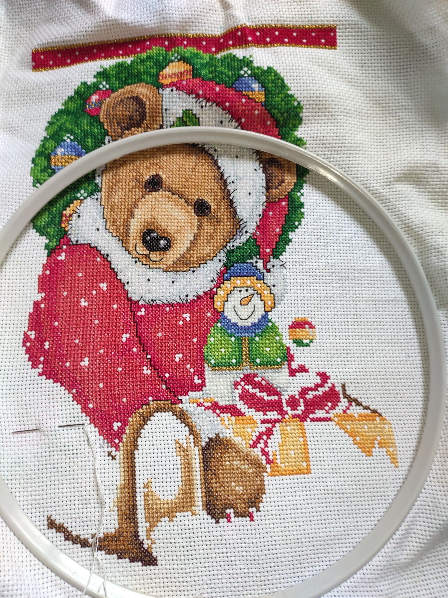 22 октября 2021 42 минуты назад, Полли сказал(а): Девчата, привет! Я принесла свой носочек. Переставила пяльца. На этой неделе удалось подарок вышить, добралась до домиков, ёлочек, шарика... Было: Стало: Вчера пару ниточек вышила в букете от Риолис, но показывать особо нечего Ой, у мишки уже подарочек!!! Маша, вперёд!!! Маша, вперёд!! vasilisa-1977, Полли, Аринесса и 2 других сказали спасибо Поделиться сообщением Ссылка на сообщение