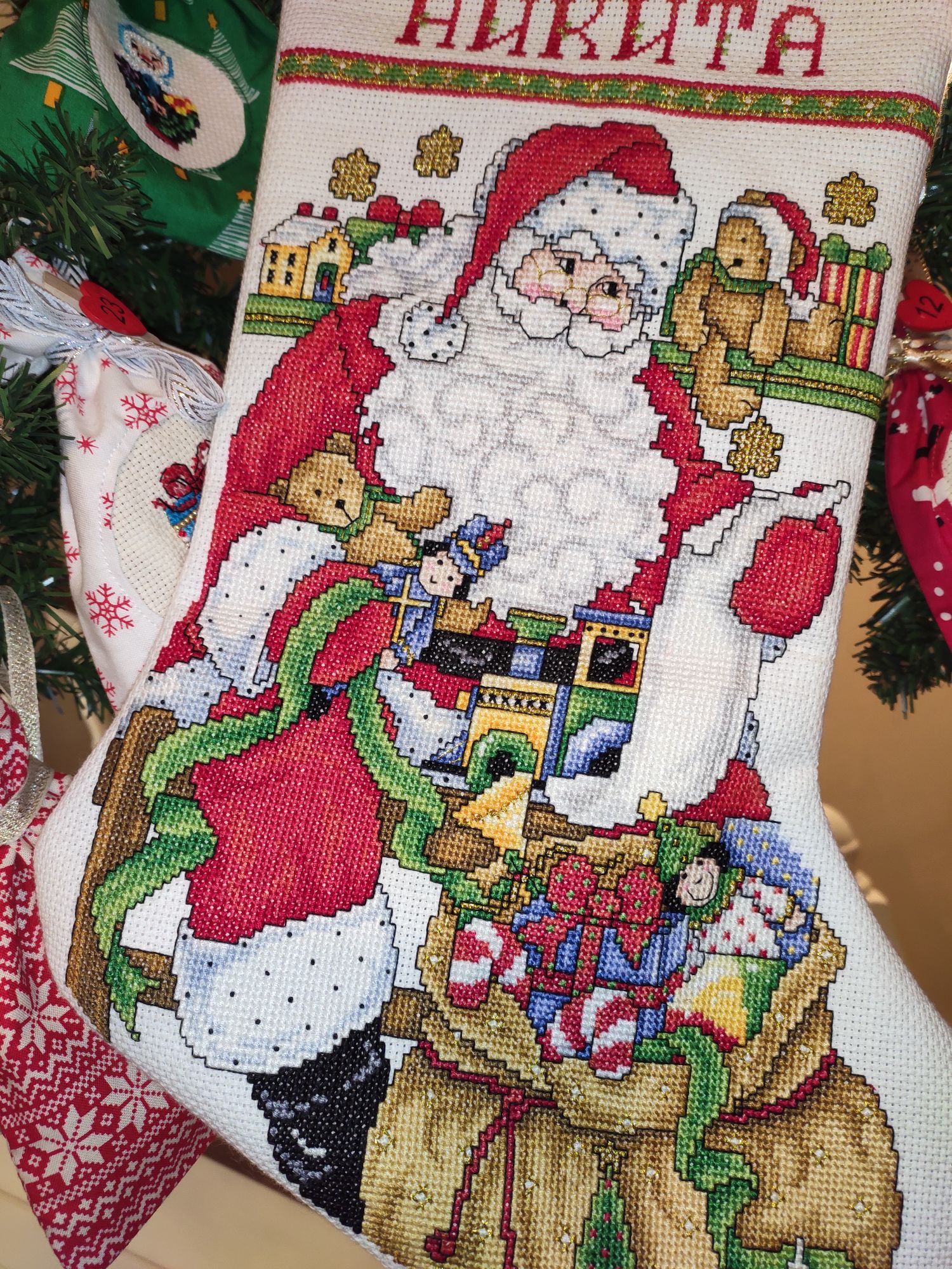 16 декабря 2021 8 часов назад, Olechka19 сказал(а): Машенька, привет! Олечка, привет! Я так рада тебя видеть! 8 часов назад, Olechka19 сказал(а): Какие замечательные процессы у тебя в темке! От всей души поздравляю с финишем и оформлением носочков! Очень милые сюжеты! И ткани-компаньоны отлично подобраны. Мальчишки знают, что им такая красота едет или эти носочки будут для них сюрпризом? уверена, что они обязательно понравятся:)) Олечка, спасибо большое! Носочки для племянников будут сюрпризом, я сестре и мальчикам ничего не говорила и не показывала. Только мама знала. Она, конечно, могла сказать. Но все равно , сестра (ее тоже зовут Оля) не видела картинок. Она очень любит мои вышивки, ценит их бережет. Недавно разговаривали с мамой и Никитой(мой старший племянник). Так он меня удивил тем, что попросил вышить ему в подарок ирисы. Очень приятно было осознать, что ребенку нравятся вышитые работы 8 часов назад, Olechka19 сказал(а): У меня тоже есть в закромах один носочек, Димовский, пока дочка была маленькая все хотела вышить, а теперь вроде ни к чему... Ничего страшного! Придет время и вышьешь его, а там уже решишь кому. Посмотрела в закромах на наборчик- очень классный! Такой уютный, добрый. 8 часов назад, Olechka19 сказал(а): Мы как елку ставим, так Дед Мороз, стоящий под елкой, каждую ночь до НГ приносит какую-нибудь вкусняшку: конфетку, мандаринчик, мелкую игрушку. Я Деду все это в руки засовываю или в маленький мешочек, который у него висит на руке.. Дочка всегда с такой радостью по утрам к нему летит:)) хотя взрослая уже почти, и выше меня ростом, но это такая классная игра получается:)) Как здорово вы придумали!!! Отличная идея! Тут даже адвент-календарь не нужен!!! Я за своими девчонками наблюдаю, и они тоже всегда с интересом ждут адвент календарь со сладостями, заданий в нем, подарков. Даже старшая (а ей уже почти 15) с нетерпением ждет праздников, готовит подарки. Это безумно трогательно 8 часов назад, Olechka19 сказал(а): Мешок я Тигрой классный вышел! Отличная идея! в мешочек дед Мороз положит сладостей...сегодня уже прикупила 8 часов назад, Olechka19 сказал(а): Новогодний домик от ВС очень понравился! не видела раньше... интересная идея! Скажи, Машунь, а вот на первой фотке процесса с этим домикой есть еще такой ажурный домик.. Он тоже как то крепиться сзади к основному изделию или это просто отдельный сувенир? у него тоже есть дырочка для подвеса... любопытно... Новогодний домик- это новинка этой осени у ВС. Они выпустили серию игрушек, в которой сочетается деревянная основа с прозрачной пластиковой. А домик ажурный получается в подарок (в процессе производства этих наборов остается одна заготовкав форме домика. думаю, что производитель решил положить ее в набор в качестве подарка). Я думаю покрасить его белой акриловой краской и потом пройтись блестящим клеем. Получится игрушка на ёлку. 8 часов назад, Olechka19 сказал(а): Выход на работу - важное событие! пусть работа приносит не только материальный доход, но и моральное удовольствие:)) это важно я считаю... я сейчас сама в поиске работы, и очень двоякое чувство мной сейчас владеет: вроде и хочу на работу, давно уже дома сижу, но и страшно менять тот уклад жизни, который есть сейчас, страшно приходить в новый коллектив... Рада, что нравится твоя работа! Мой выход на работу случился как-то спонтанно. Я в свой день рождения встретила знакомую, которая и пред