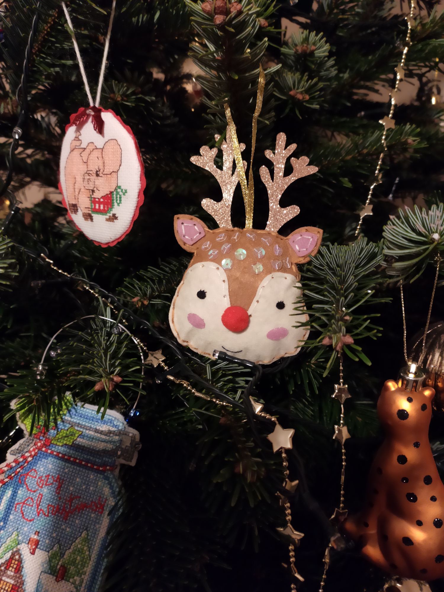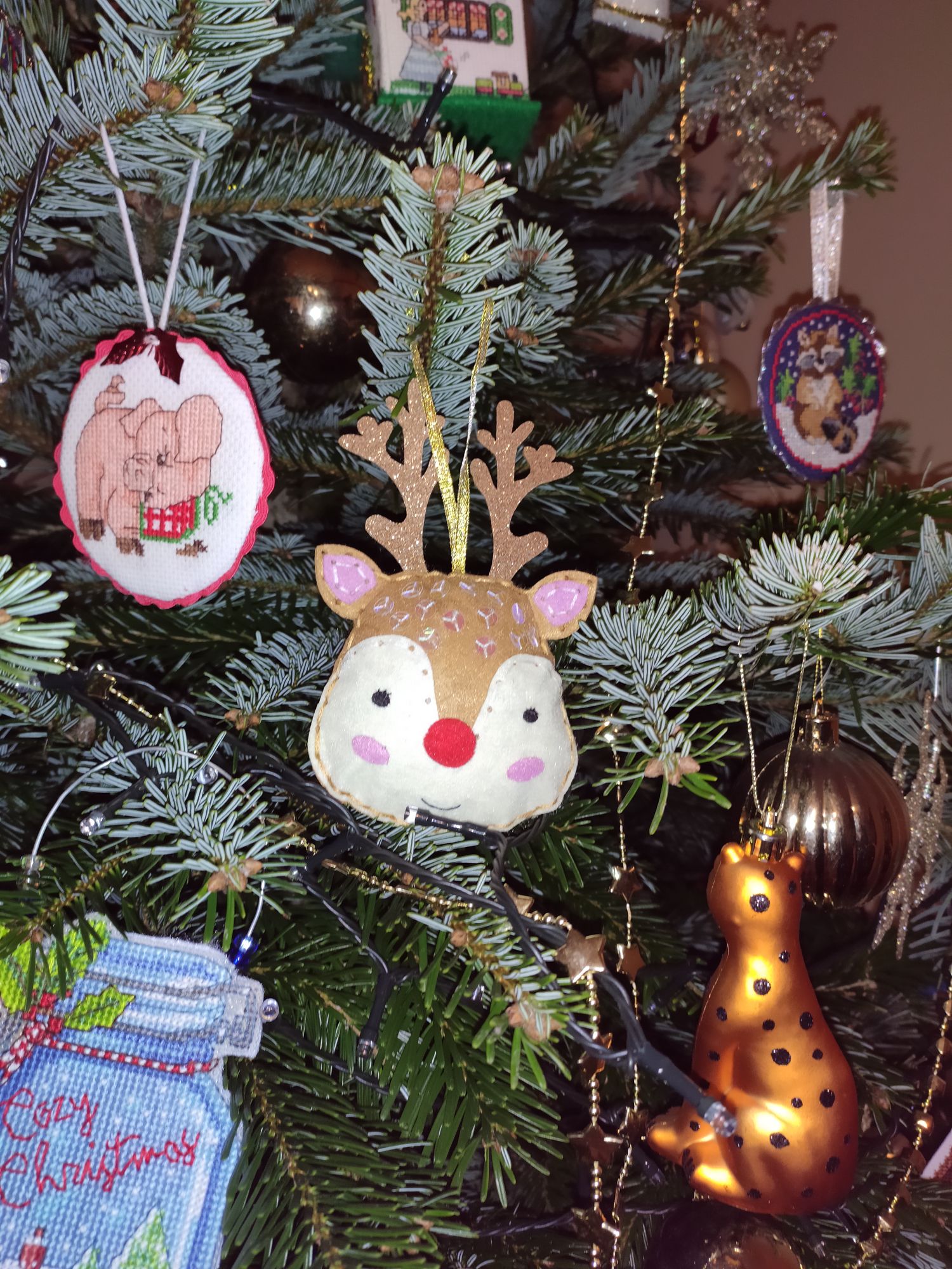 16 декабря 2021 Всем привет!!! Вышиваю сейчас крайне мало, даже показать нечего...Вчера собрала новогоднего фетровичка по набору. На прошлых выходных привезли елочку . нарядили ее. За одно и дом немного украсили. Муж смастерил мне Рудольфа. Такой милый получился И немного вечернего кота Juliay, Аментет, Аринесса и 12 других сказали спасибо Поделиться сообщением Ссылка на сообщение