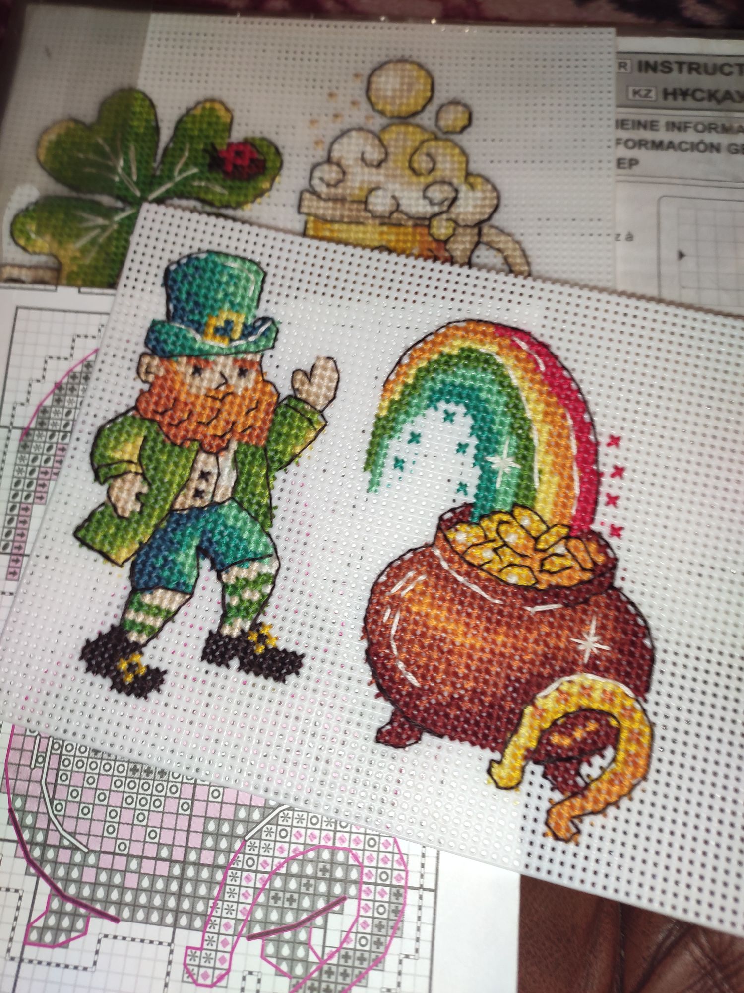 22 апреля 2022 Всем привет! Я сегодня с отчётом! Вчера закончила магнитики от МП Студии. Можно зеленить гаечку! Вышивая их, получила огромное удовольствие! Осталось оформить. Вот думаю, как лучше оформить в магнитики или игрушки. Игрушки могла бы на день Св. Патрика вешать и даже на ёлку!!! Танюша @vasilisa-1977, спасибо огромное за подарок!!! Было: Стало: Анемончики продолжают расцветать в коробочке. Осталось совсем немного... Было: Стало: После анемонов возьмусь за осенний букет, так тоже совсем немного осталось. И за маленький маяк от РТО. Затем думаю достать что-то из долгостроем, пока не решила который из многочисленных Всем здоровья, добра! И с наступающим праздником Пасхи! svetlana62, Egelia, Аментет и 12 других сказали спасибо Поделиться сообщением Ссылка на сообщение