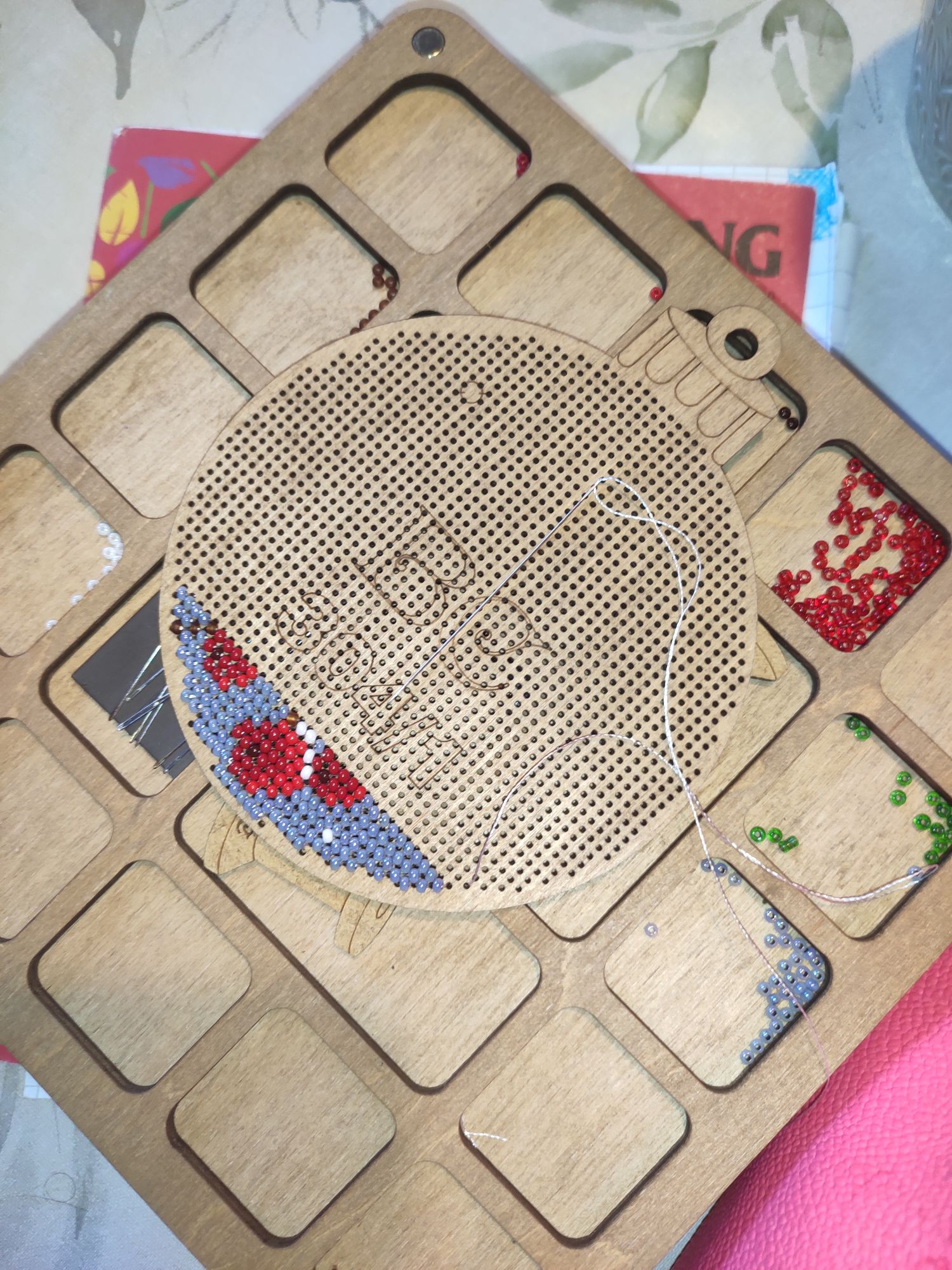 5 сентября 2022 Не знаю, когда получится показать свои продвижения в крестиках, поэтому покажу их сегодня У меня два финиша. Я в пару к зайчонка вышила олененка. Надпись сделала на литовском "Сладких снов, Йорис". Осталось оформить вышивки в подушки, но для этого нужно вдохновение и время Достала ещё начатый зимой процесс, бисерный от Волшебной страны. Его я здесь не показывала. Напишу, что очень понравилась комплектация набора, здесь есть даже набор для подвешивания готовой работы. Очень классно, что основа, натянутая на подрамник, уже вставлена в готовую раму. Вот такой милый неуклюжий Тедди получился в итоге. И достала ещё один бисерный процесс. Его я анонсировала, это два шарика с рябинкой и синичкой. Начало второго шарика положено: И ещё новости с полей нашлись мои потерявшие ниточки от ирисов!!! Как они оказались под диваном...история остаётся загадкой... Надеюсь вскоре вернуться к моим ириски Juliay, Каори, maui и 13 других сказали спасибо Поделиться сообщением Ссылка на сообщение