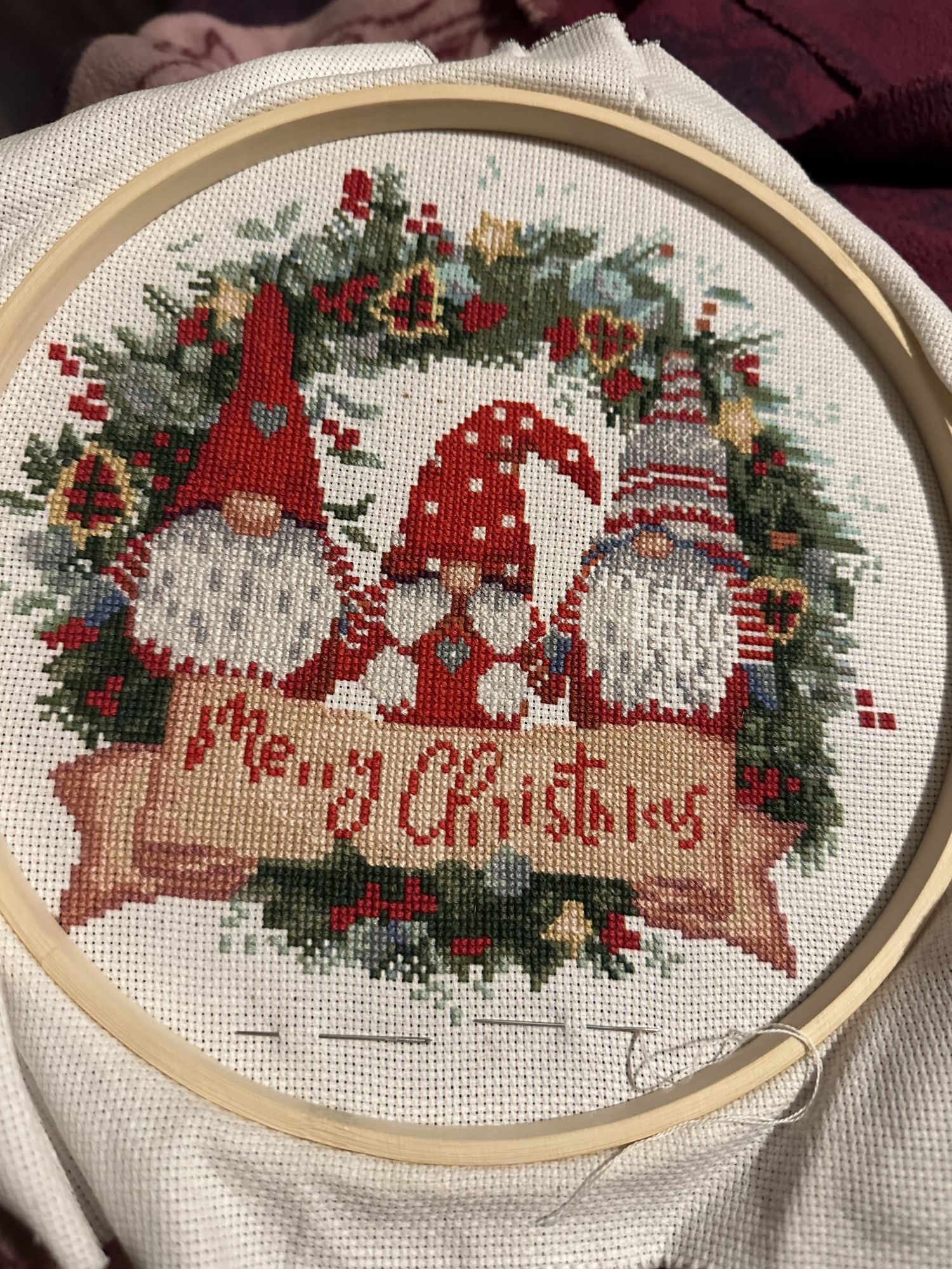 30 января 2024 Пока есть минутка покоя на работе, покажу свои финиши. 30 декабря я закончила свою рождественскую дорожку. Финиш! Зеленим гаечку! Получилось очень красиво. Снежинки вышивала металликом, бекстич тоже выполнялся блестящей ниточкой. Это придало дорожке то самое новогоднее настроение. Подарила подруге, которая подарила мне этот набор. Не могу похвалиться, что подарок понравился…была неоднозначная реакция…может потому, что подруга подарила набор. Как-то так. Девочки-модераторы, поменяйте пожалуйста название фирмы на Рико. Я ошиблась. Еще я закончила свою снегурочку, правда не собрала ее. А еще мы с Таней @vasilisa-1977 начали СП… который закончился, не успев начаться Таня вышила гнома за два вечера, а я все никак не пришью к нему бисер… Хотя осталось совсем чуть-чуть. Параллельно «мучаю» других гномов. У меня гномовый бум Вот, что имею на данный момент. На этом пока все! Будет минутка, принесу еще что-нибудь всем здоровья, мира и добра росомашка, Juliay, Selenia и 11 других сказали спасибо Поделиться сообщением Ссылка на сообщение