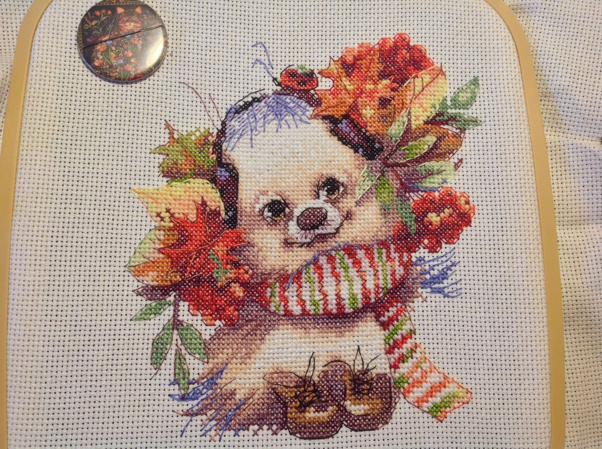 13 октября 2023 Очень осенняя мелодия процесс завершён честно скажу, что я закончила эту работу с большим скрипом, сложности пришлись не бекстич, я перепутала немного номера бекстича, нужно было смотреть на цифру над обозначаение бека, а я смотрела под ним, и этого бека там тьмущая, да он счётный, но он он меня взебесил здесь, давно меня бек так не раздражал. Вообщем я поняла, что откладывать на потом эту работу гиблое дело, чем дальше, тем больше мне не хочется заканчивать пёсика, оставлять же его в долгосторях мне совсем не хотелось. Поэтому бек сделала не весь, и тот, что есть иногда не тем цветов, но мне все абсолютно все равно. Наверное, Я рассматривала этот процесс как отдыхалочку, а оказалось она не так проста, и я к этому была не готова. Фон я не вышивала, потому что пёсик настолько "тискательный", что хочется сделать из него подушечку, а при вышивке фона, на мой взгляд будет довольно сложно выбрать ткань. OlyaKslv, shustri4ka, герда28 и 20 других сказали спасибо Поделиться сообщением Ссылка на сообщение