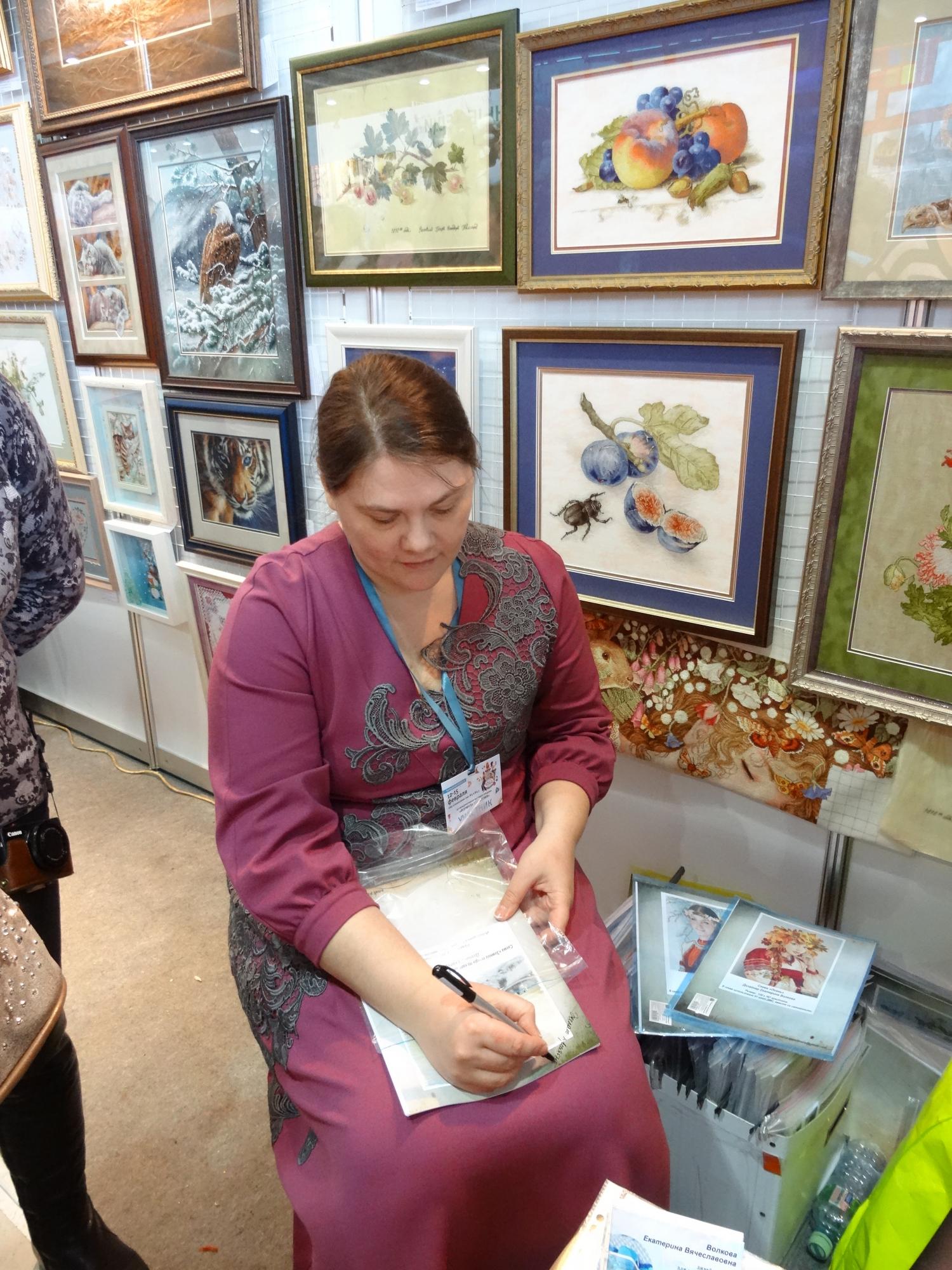 17 февраля 2015 Потом мы познакомились с Екатериной Волковой! Посмотрели отшивы ее работ вживую и конечно купили схемки с автографами. Екатерина очень милая и приветливая). Лена1973, natlus, Aries и 19 других сказали спасибо Поделиться сообщением Ссылка на сообщение