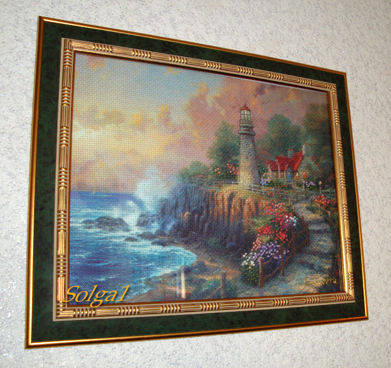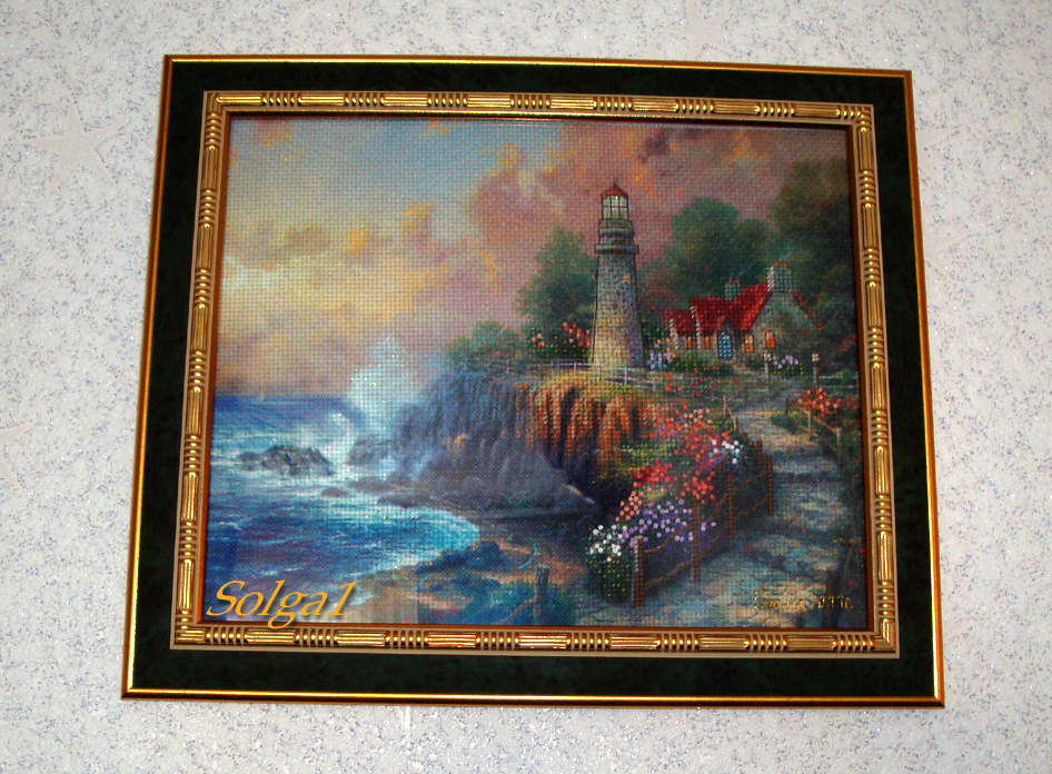 12 сентября 2011 Вот и пришла пора заняться оформлением летних работ... 2 уже готовы, ещё 4 сдала сегодня, будут через неделю. Хоть и привезли к нам много багета, но всё какое-то однообразное, и очень сложно выбрать... Эх, остаётся только мечтать о багетках с грамотными консультантами и разными паспарту-слипами... Ну зато дешевле получается. Итак, вот что у меня уже висит на стенках: Маяк. Всё-таки эта частичка смотрится очень хорошо, объёмно. Те немногие крестики и фр.узелки, которые там вышиваются, хорошо выделяются на нарисованном фоне. Поэтому если кому не важно, что маловато работы в процессе, результат должен порадовать. Кстати, этот маяк подарила мужу на день рождения, ему очень понравился. Правда он заодно решил все летние работы считать подаренными ему... А вот Феечка поцелуев. Рамочка для неё может быть слишком пёстрая. Была там более подходящая, но... Раз уж она у меня сразу планировалась в пару к Фее весеннего дерева, то решила всё же оформить их одинаково. Пусичка Пушистая, Sabrina и Avendeyl сказали спасибо Поделиться сообщением Ссылка на сообщение
