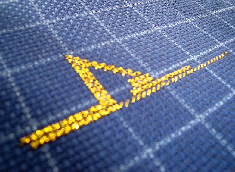 И так как прошлый параллельный процесс (часики для дочки) закончен, то начала новый параллельный процесс - Сову (тоже для дочки). Шью её, когда время есть, а комп занят (т.к. Прелюдию шью с компа). Сова схематичная, монохром. Картинки с тем, что получится, у меня нет, только схемка, случайно встреченная на просторах интернета. Сразу захотелось её вышить для дочки, тк: она увлекается Гарри Поттером и заодно совами, сова - вроде как символ ума и может служить неким оберегом для хорошей учёбы, просто захотелось пошить золотой ниткой на тёмном фоне. Канва тёмно-синяя, почти чёрная, на фото выглядит гораздо светлее. Нитки китайский какой-то металлик, но по сути - практически не отличаются от подобных золотых ниточек, которые были в кандамаровском наборе Фея поцелуев. Аида 14, в 2 нитки. Шить металликом мне нравится, я честно говоря, вообще не вижу разницу , чем шить - мулине, шерсть или металлик. Если ниточки где-то и перекручиваются, так это только даёт дополнительное преломоение лучей, соответственно - больше блестит, что мне как раз и надо. Блестит очень даже хорошо, но на фото это передать не удалось.