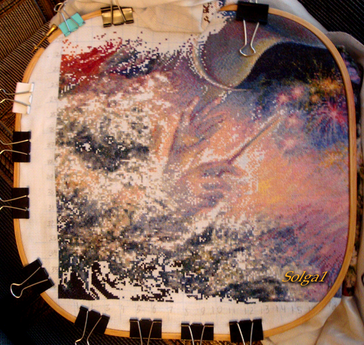 Эх, Оля!... Какой там финиш, я едва за половину перевалила! Ещё весь верх не охвачен, не говоря уже о том, что на этом участке ещё много тысяч крестиков. Вот дошью его, разверну вышивку и попробую посчитать, сколько примерно десятков тысяч остаётся... :pardon: