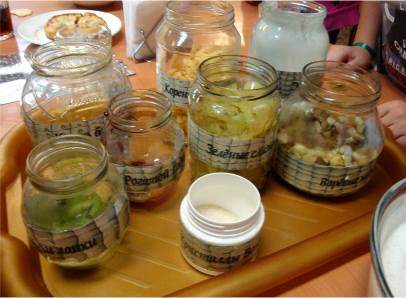 И вот такое зелье мы варили, из ингридиентов - зелёные слизни, варёные медузы, яд коричневой рогатой гадюки и прочие вкусняшки. А получился почему-то фруктовый салат... :smile: