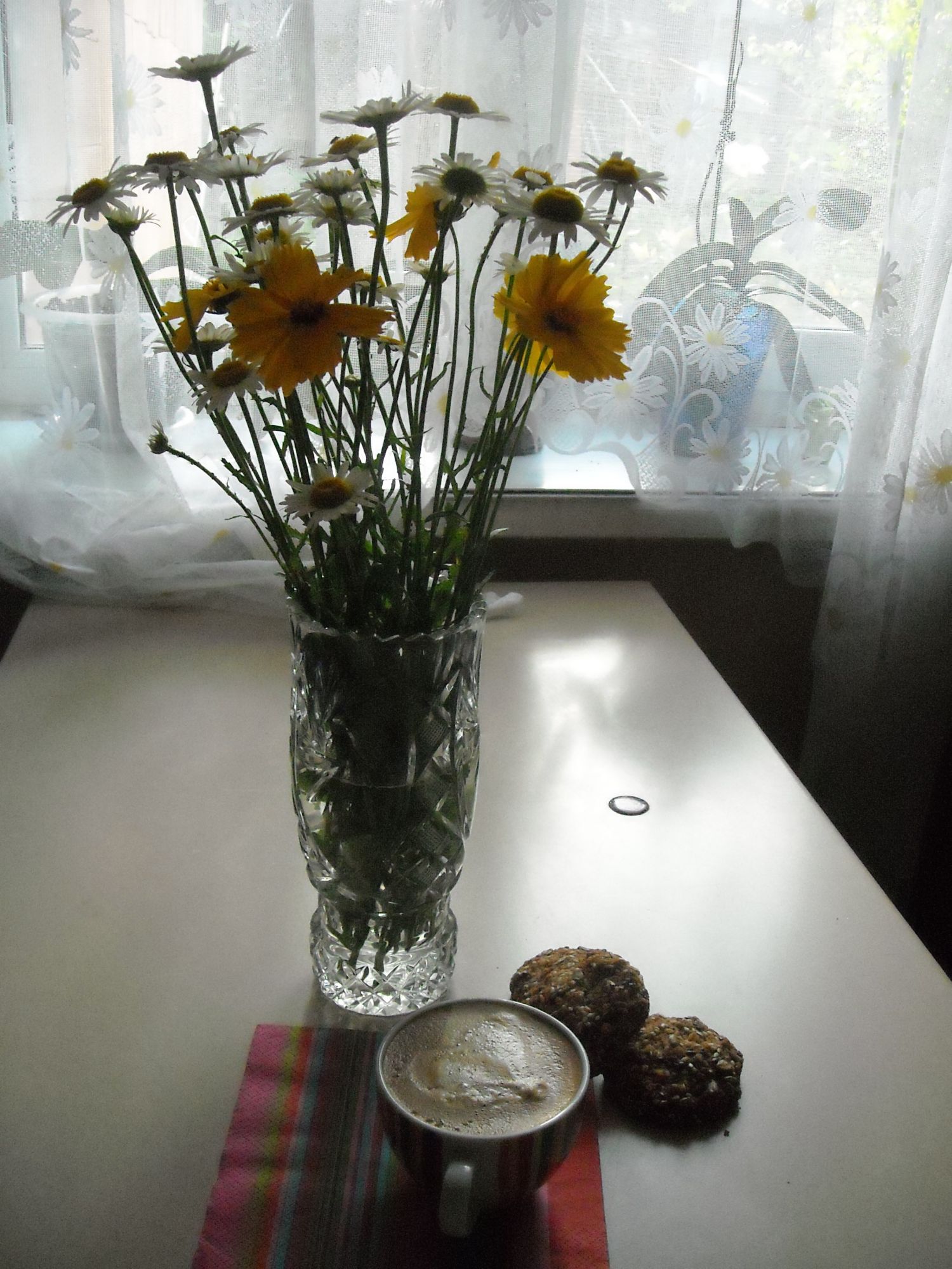 6 июня 2019 Девочки, доброе утро!!! - вчера подружка забежала в гости и принесла мне такой чудесный букетик, прямо продолжение моей вчерашней ромашковой темы, - сердечко (я не бариста - я только учусь, поэтому сердечко не очень хорошо проглядывается в кофейной пенке) вам от меня, - просто для хорошего настроения, - наконец-то моя красавица распустила свои первые нежные цветочки!!! Вышивальных продвижений не будет - сегодня праздник Вознесения Господня!!! Всех со светлым праздником!!! Не знаю почему, но сегодня проснулась и тихонько запела, вернее замурлыкала этот шедевральный, горячо мною любимый, гимн вечной любви!!! https://vk.com/video190957056_171710148 Всем прекрасного, радостного дня!!! sta.nsk, Гало4ка, maui и 19 других сказали спасибо Поделиться сообщением Ссылка на сообщение
