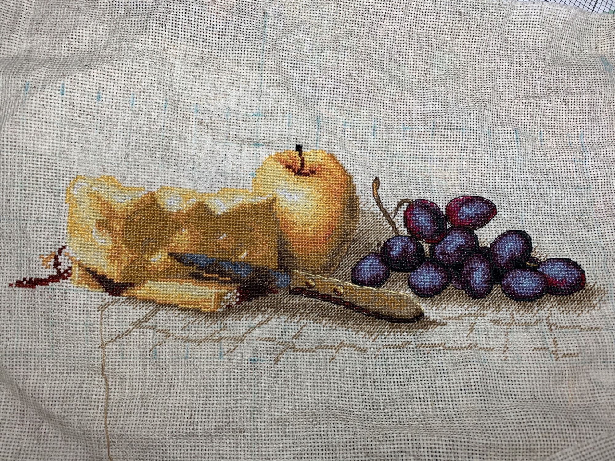 20 января 2020 Ну и начала новый процесс, захотелось мне быстрого результата, вернее финиша в январе. И это - Овен 859 «Мечты гурмана», канва лён 15, 39х14, 26 цветов. Понравилась рустикальная основа - ничего менять не стала результат очень нравится, процесс исключительно приятный, схема простая, хочу помарафонить с этой работой, результат пары вечеров: Удивительно, как таким простым решением, буквально несколько цветов, удаётся добиться эффекта отлива винограда Вообще, в этом году хотелось бы финиша в каждом месяце ну и по итогу, 12 за год - это программа минимум такой план. По сюжетности не планировала, буду доделывать хвосты и выбирать по настроению. lenning, Tata44, irisheckin и 8 других сказали спасибо Поделиться сообщением Ссылка на сообщение