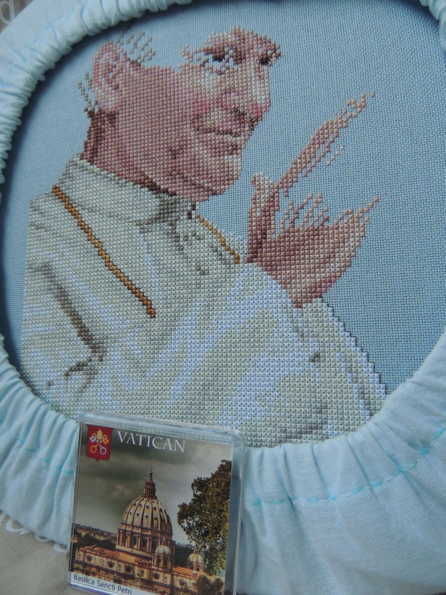 30 сентября 2018 Janlynn 023-0383 Pope John Paul II -ЗАВЕРШЕН Процесс завершен. Самым сложным оказался Собор Святого Петра,долго я его вышивала,несколько дней.Схему бэка сделали с ошибками,не всегда шаг в 1,5 клетки совпадал ,в общем,вышила практически сама,распарывала 5 раз.. Постирала,погладила,освещение вечернее,под двумя лампами дневного света.Оформлять буду позже. Кисуля, anjyta, Julia_D и 1 другой сказали спасибо Поделиться сообщением Ссылка на сообщение