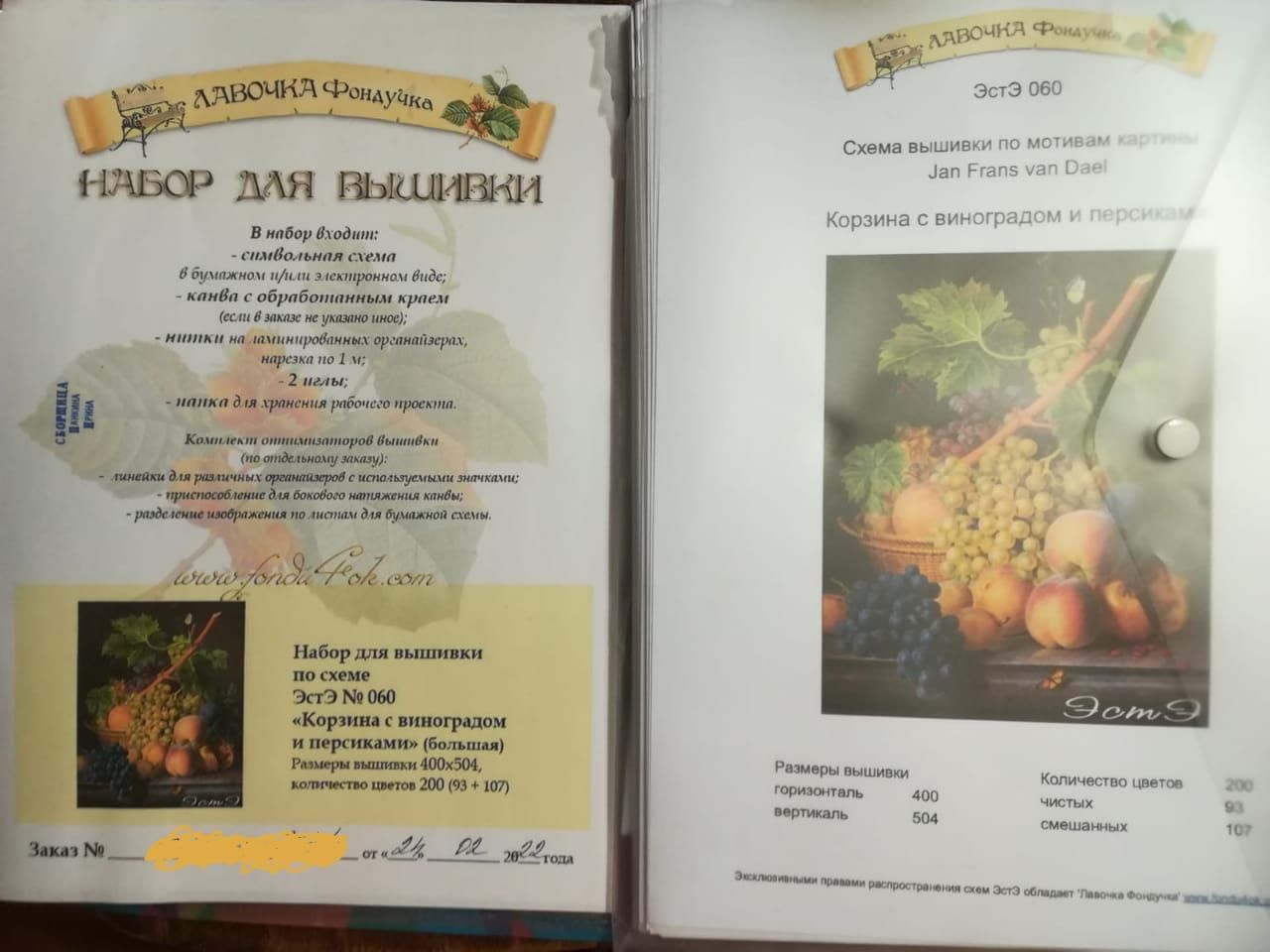 18 мая 2022 Всем привет) Я вернулась в вышивальный мир)) Пока сидела в полумраке и лечила больной глаз, случилось следующее. Заказывая продукты в Утконосе, пока болелка выбирала молоко, здоровый глаз скосился на соседний сайт. Им оказалась Лавочка Фондучка)) Таким образом вместе с продуктовой корзиной ко мне приехала корзина с виноградом и персиками от ЭстЭ))) Когда больной глаз стал приходить в себя, оказалось, что набор уже в процессе))) Как-то так) Итак, представляю вашему вниманию великолепный натюрморт, который буду вышивать параллельно с Песней Ангелов). ЭстЭ 060 Корзина с виноградом и персиками, по мотивам картины Jan Frans van Dael. Размер 400х504, канва DMC 18сt со смываемой разметкой, 200 цветов (93 чистых + 107 блендов). Вышиваю, как всегда, на пяльцах по бумажной схеме с увеличенными значками. Листов в схеме – 121. На данный момент вышито 3 листа, осталось 118)) Уже задействовано символов – 41 (12 символов – коричневые оттенки ниток и 29 - всяческих зеленых). WhiteMoth, Графиня, Ксен40 и 10 других сказали спасибо Поделиться сообщением Ссылка на сообщение