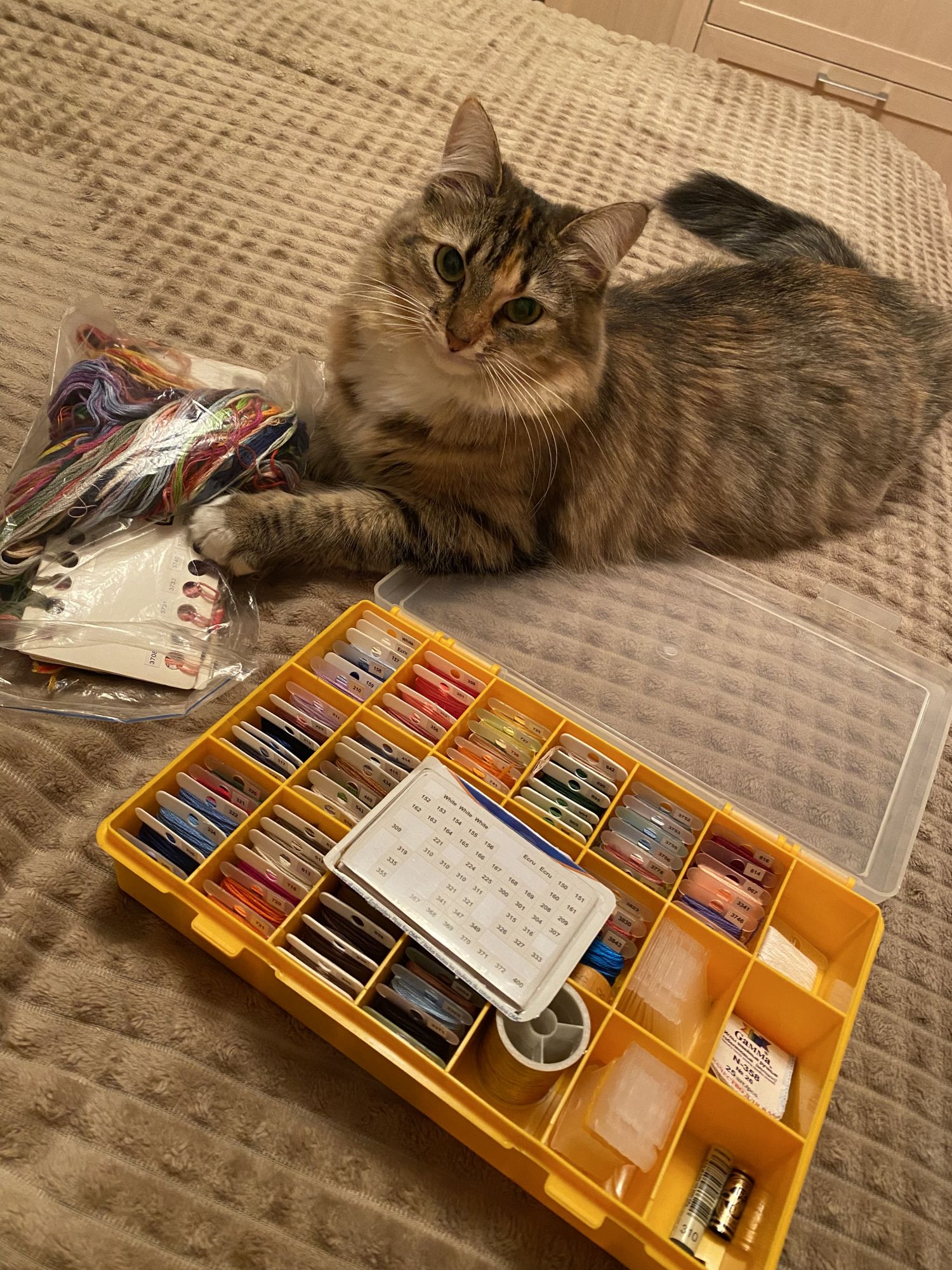 19 ноября 2022 3 часа назад, _littlemisss_ сказал(а): Julia_D, Anna1974, Юлечка, Анюта, спасибо!!! Сегодня половину вечера посвятила наведению порядка в своих нитках и подготовке к вышивке Совиного леса. По второму пункту Все оказалось не так просто, как я думала, я параллельно смотрела видео на ютубе о том, как вышивать нитками ручного крашения. Оказывается девочки творчески к этому подходят, мало того, что надо каждый крестик закрывать (к этому я уже была готова), так ещё и смотрят, горизонтально или вертикально шить и, тем самым, создавать уникальный узор или плавно переходящий градиент. Мне эта затея очень понравилась, но, к сожалению, я человек с абсолютным отсутствием фантазии и творческой нотки… Как бы не пропал запал при таких вводных Я именно из-за этого в свое время бросила шить брошку гладью от Панны, потому как, на мой взгляд, там творчество чистой воды. Но, попытка не пытка, ткань отрезана, нитки перемотаны на бобинки, органайзер подготовлен, стартую Можно заводить гаечку Совиный лес (OwlForest) 0051-МД-Н Милый дом Ну и фото моей любимейшей помощницы, без неё с нитками мне не управиться было никак Аня, с началом тебя!) Легких крестиков! Ты справишься, я уверена))) Будем с нетерпением ждать твои фотографии! Клёпушка чудесная) anjyta, Anna1974, _littlemisss_ и 1 другой сказали спасибо Поделиться сообщением Ссылка на сообщение