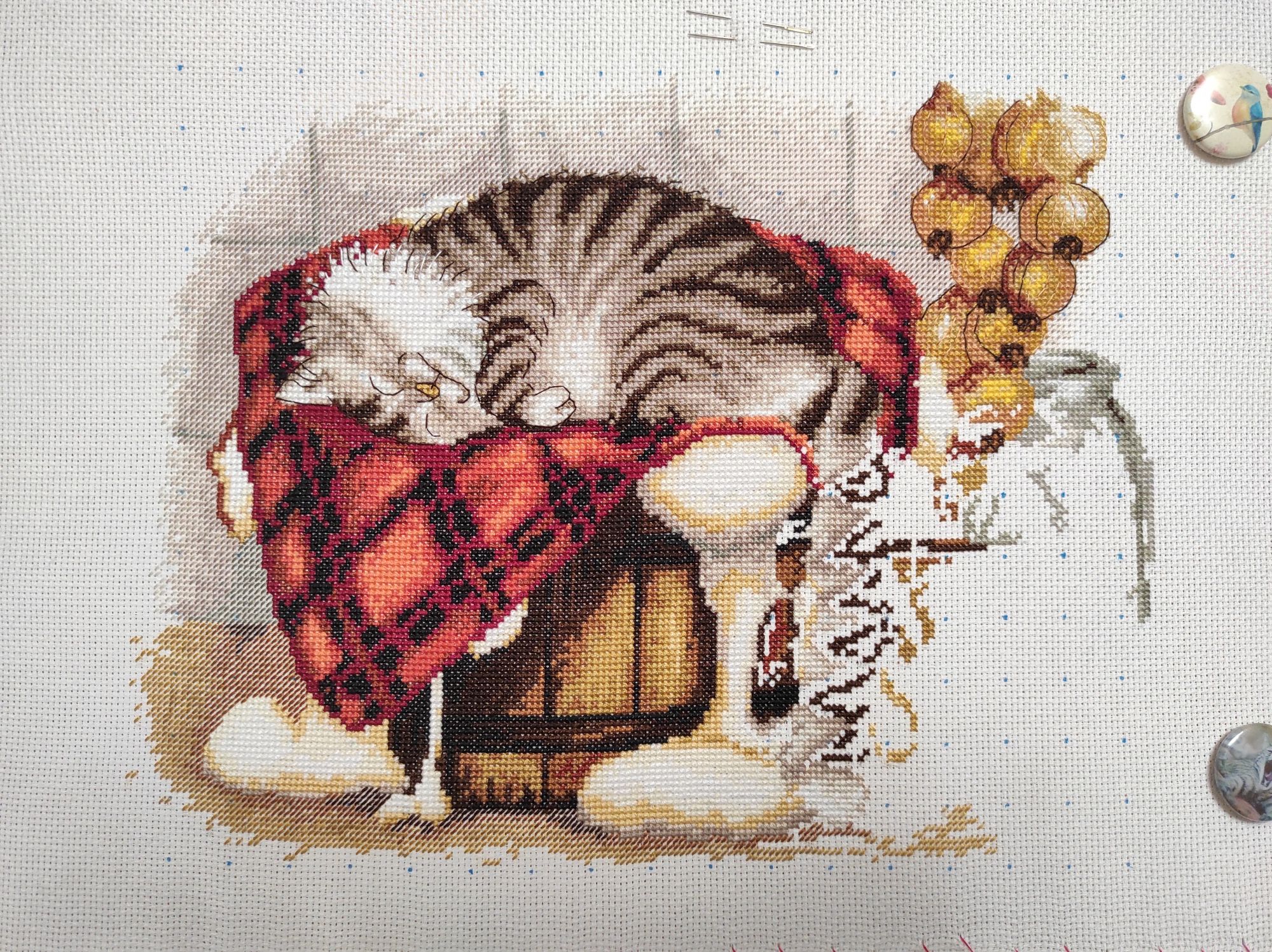 Четверг в 11:50 03.12.2025 в 12:25, OlyaKslv сказал(а): Девы, привет! Несу вам кота. Если бы моя вышивка была с полной зашивкой, я могла бы сказать, что на канве появился 3-й уголок. Левая половина сюжета готова. Бахрому, которая должна быть на полотенце по задумке дизайнера, вышивать не буду, не хочу лишнего объема на вышивке. Ой, щас пишу, смотрю на фото и понимаю, что с одни цветом я кажется накосячила. Вечером перепроверю, похоже придется пороть, но там немного. Марья искусница, Тёплое местечко Оля, какой кот классный получился, такой прям теплый, уютный) Надо заканчивать, немного осталось совсем) anjyta, OlyaKslv и starcat сказали спасибо Поделиться сообщением Ссылка на сообщение