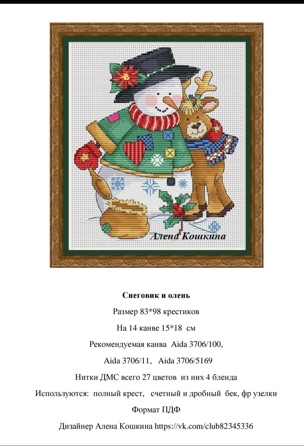Вторник в 19:50 1 минуту назад, Julia_D сказал(а): Принарядила снеговика)) Снеговик и олень по схеме Алены Кошкиной Ему явно кого-то не хватает слева) Julia_D и anjyta сказали спасибо Поделиться сообщением Ссылка на сообщение