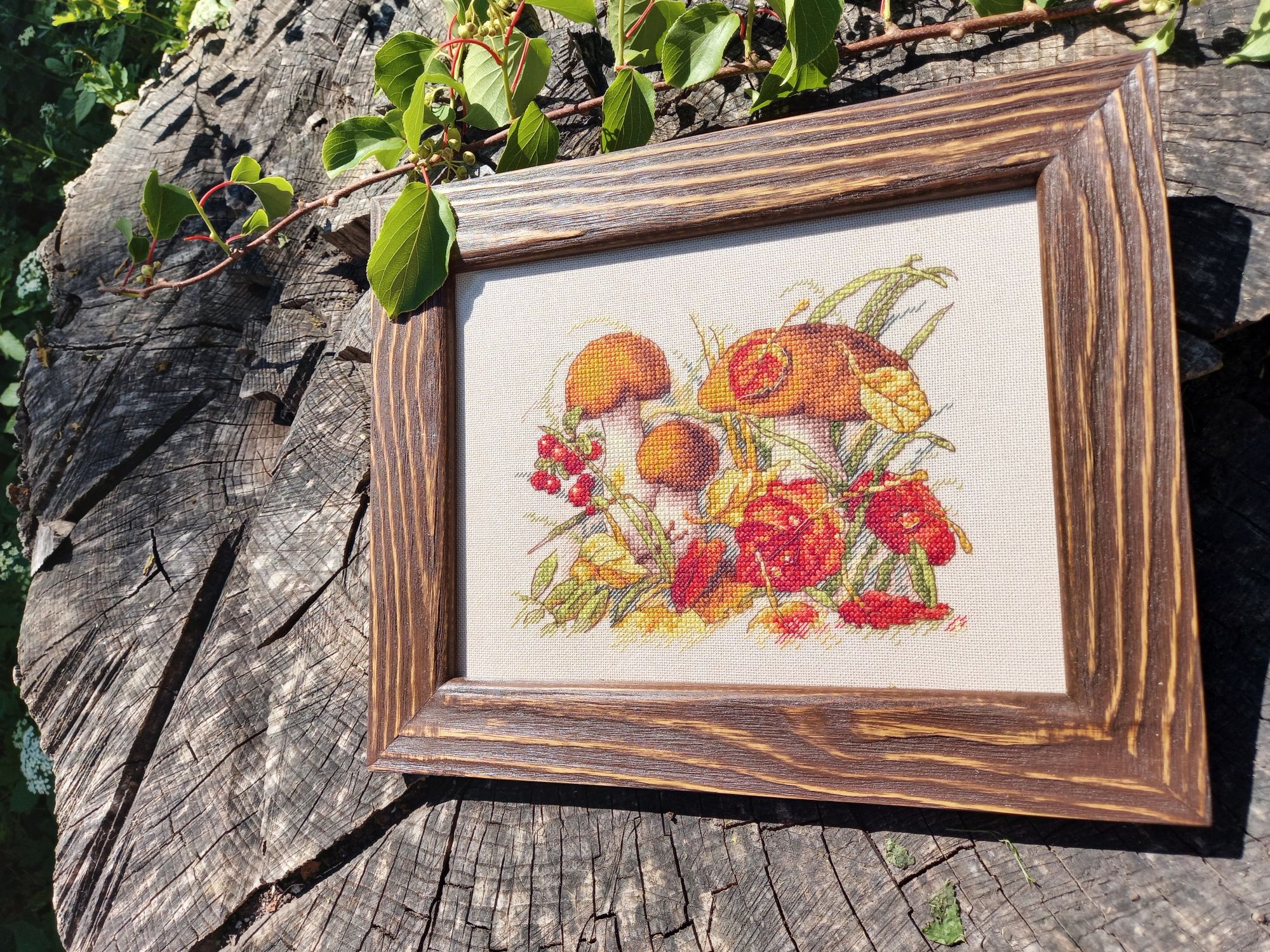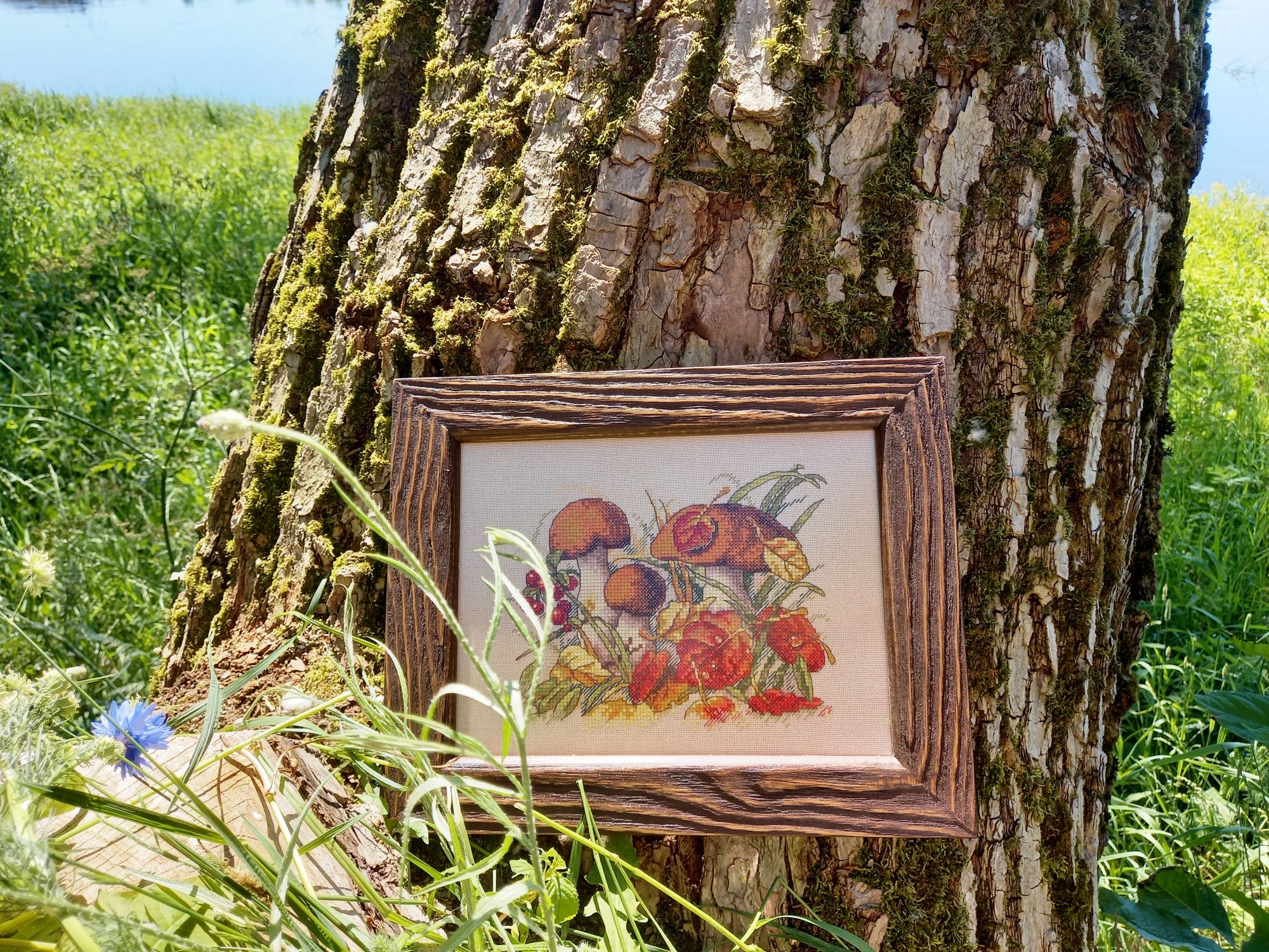 22 июня 2021 19.06.2021 в 11:54, Tata44 сказал(а): Одновременно с овалом заказала рамку из дерева для грибочков МП-Студии "Дары осеннего леса" размер 18х13см, канву из набора заменила на равномерку бежевого цвета, стекло тоже антиблик. Этот процесс был как раз перед "Дубовой рощей" , в ноябре 2019г. При фотографировании заметила, что при ярком и прямом попадании солнечных лучей на раму она смотрится иначе, чем в тени, и совсем темной смотрится при дневном освещении. А в момент, когда солнце было высоко, прям надо мной (фото возле дерева) рама вообще меняла свой цвет на очень желтые разводы структуры дерева Красивое оформление! И презентации все прекрасны, подсвечены естественными лучами. Я как-то упустила момент, а потом стала читать тему и увидела фото "Рощи" с белыми краями... Да ((( Надеюсь, что в ближайшем будущем они все переделают, держу кулаки. АлёNка, Tatiana2406, lefkorosida и 7 других сказали спасибо Поделиться сообщением Ссылка на сообщение