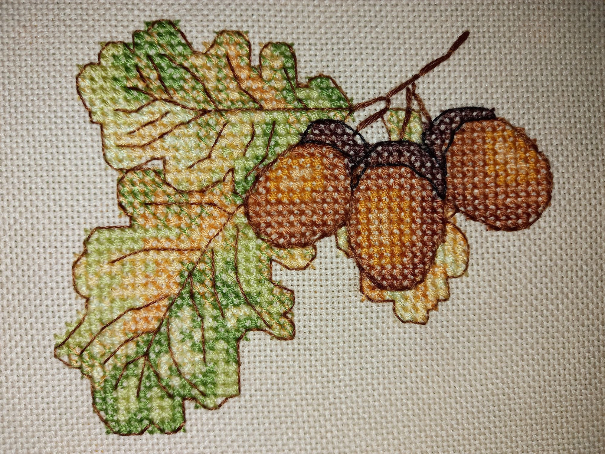 31 декабря 2021 7 часов назад, Tata44 сказал(а): вышивка по схеме Алисы Окнеас "Желуди" (она из сборника Осенних схем разных авторов) Таня, @Татуся, привязка в процессе не к этой схеме Алисы Окнеас, у меня вот есть только фото сборника схем "Палитра осени", и вот заголовочная часть от ключа схемы "Желуди". В Инете не нашла картинки цветной, может пойдет одно фото из моего процесса? Ну и добавлю, что схема была с белыми завитушками, но я их не вышивала, они для квадратного дизайна были бы хорошо, а в круг никак не вписывались! lefkorosida, Lorans, АлёNка и 9 других сказали спасибо Поделиться сообщением Ссылка на сообщение