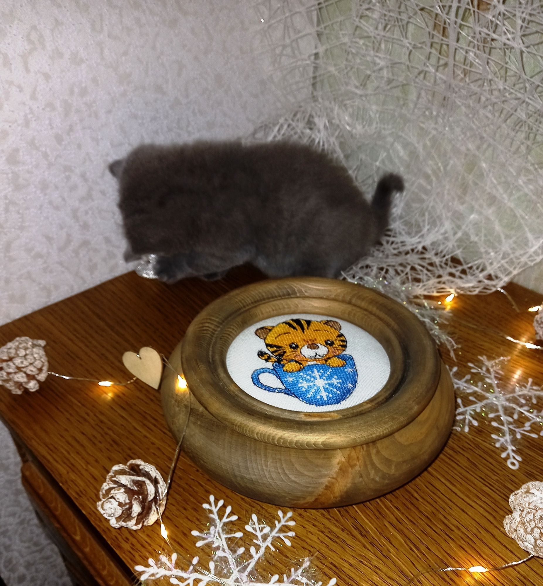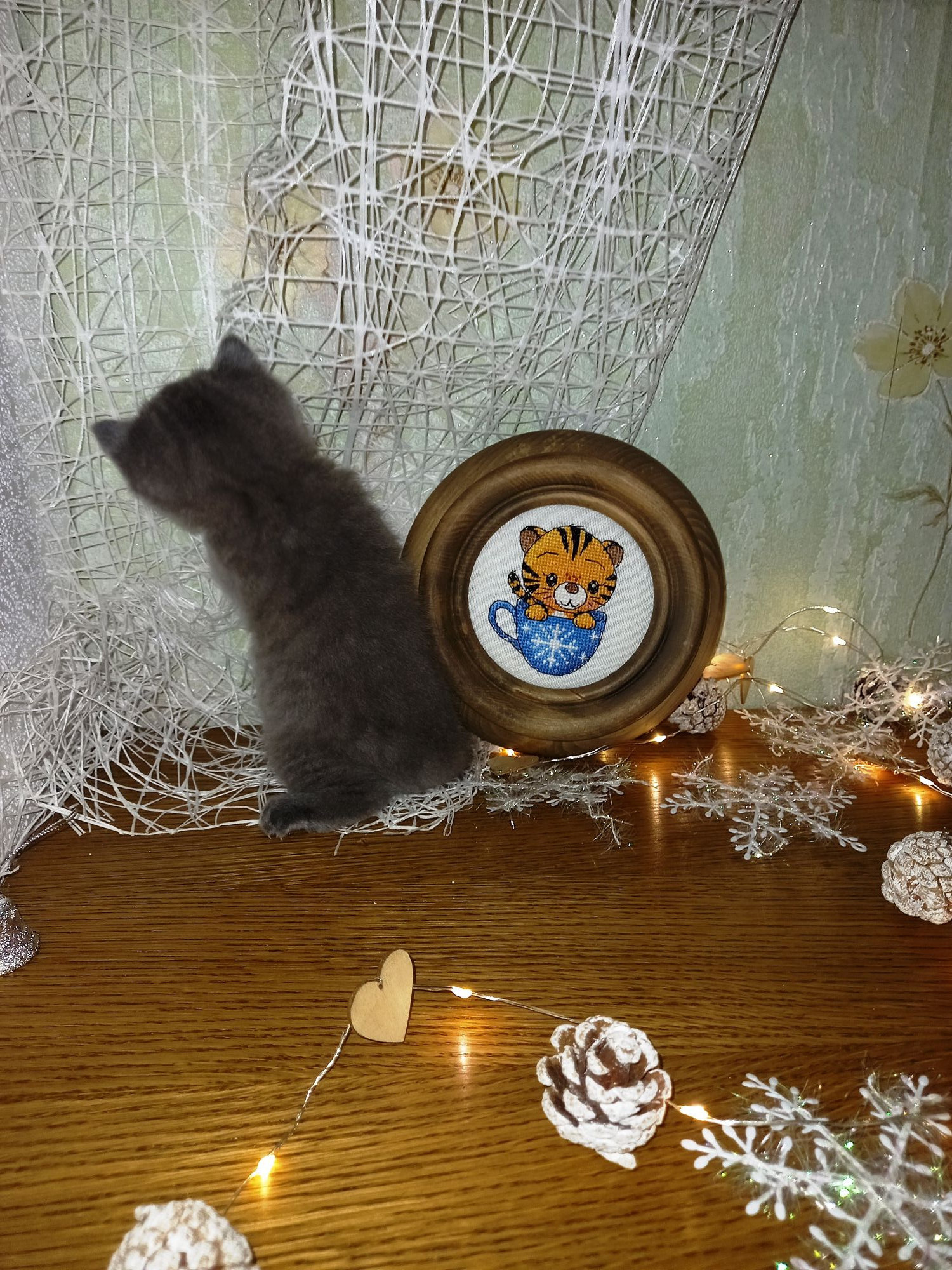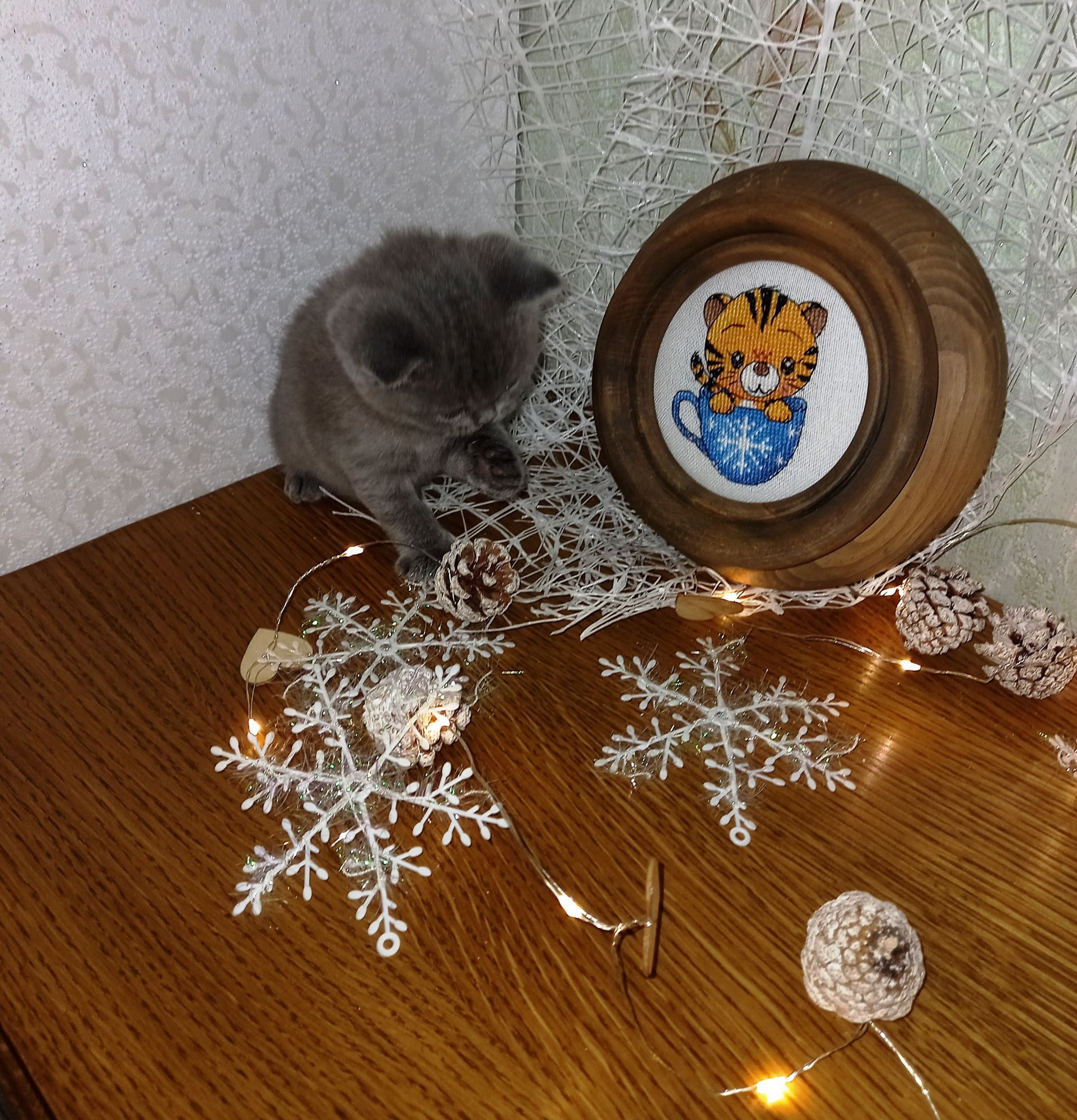 30 декабря 2021 Проект "Новогодние подарочки" 4-ый секретный процесс "Тигренок в чашке" от Овен. Этот прелестный малыш семейства кошачьих показался мне самым милым дитятей из всех просмотренных мною тигрят. У этого тигренка две миссии, одна тайная, а вторая, как у всех тигров - быть защитником дома, и не только от пожара! По задумке производителя, это должен был быть магнит на пластиковой основе, но я естественно, заменила её на равномерку белого цвета Бритни Лугана 28 каунта. Процесс: Танин тигренок привлёк мою маленькую новорожденную Усольку. Хотя, как вы видите по фото, скорее её интересовали проводочки, шишки, и другой антураж. А сидеть в чашке Усолька не хотела даже 20 секунд! svetlana62, АлёNка, Хозяйка смешных зверей и 16 других сказали спасибо Поделиться сообщением Ссылка на сообщение