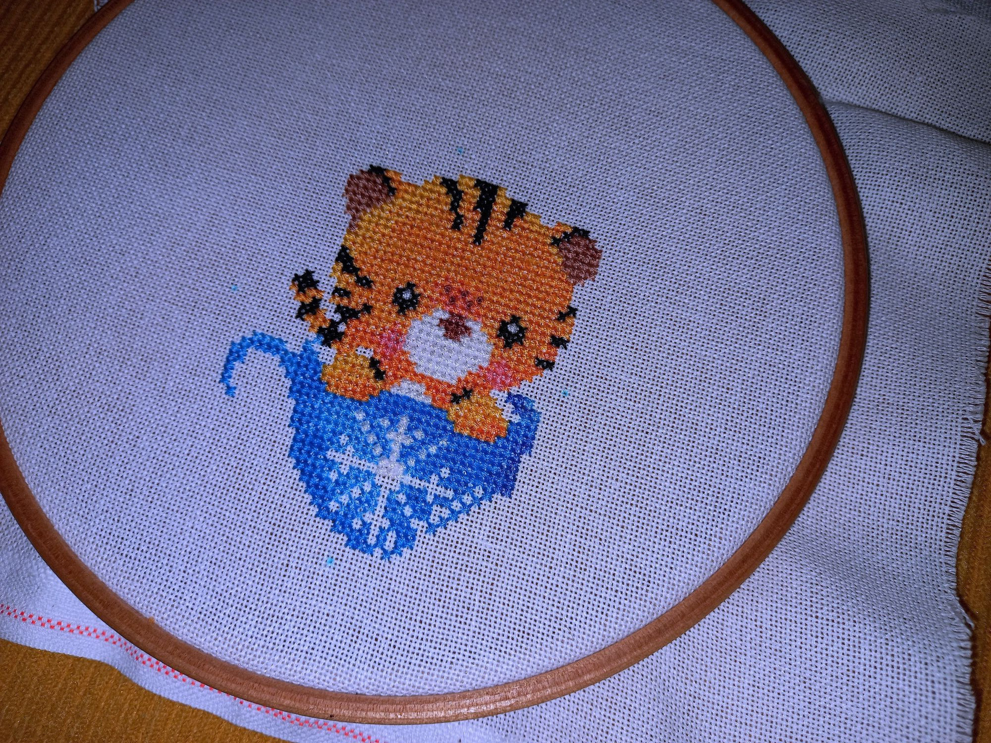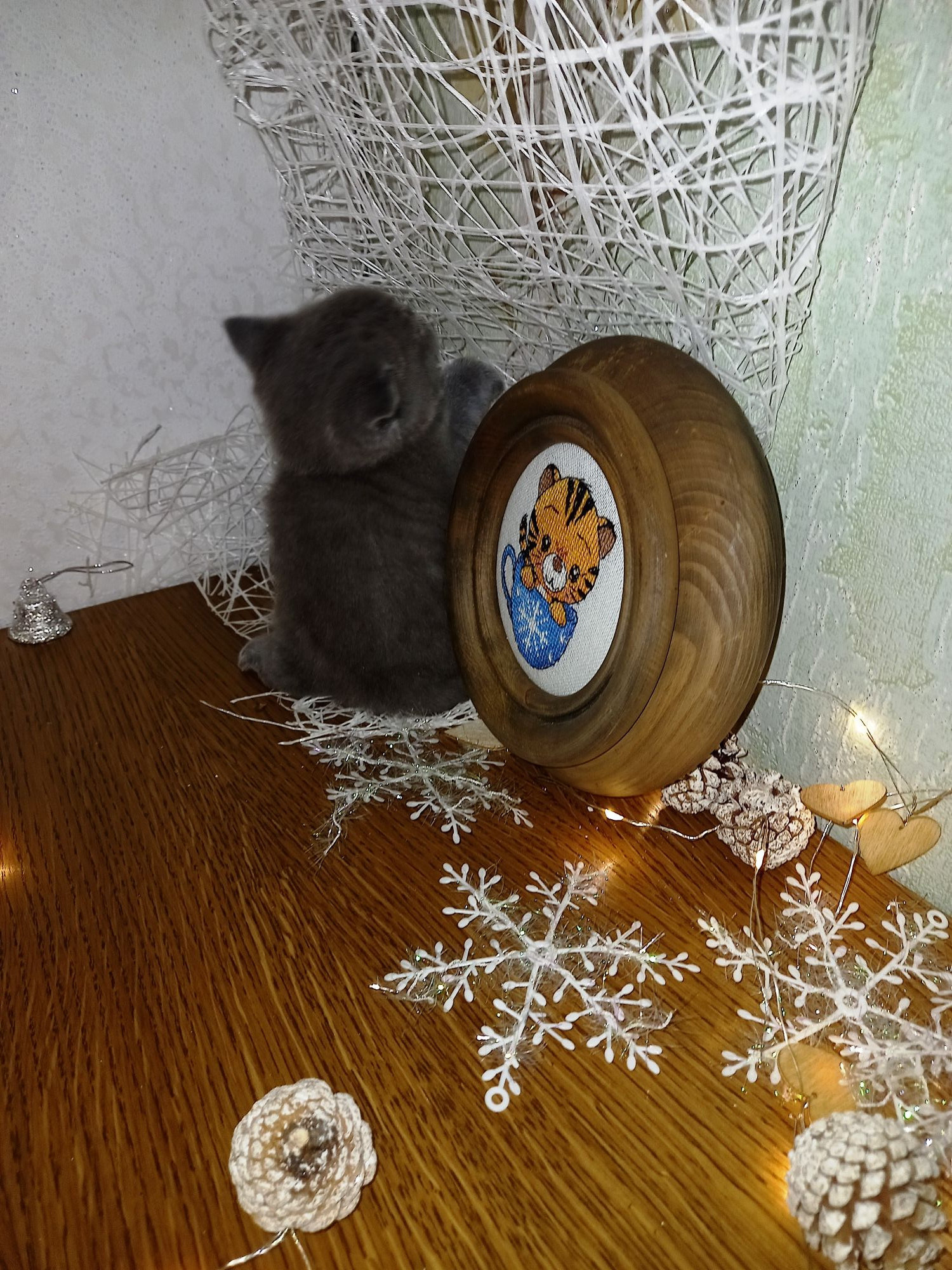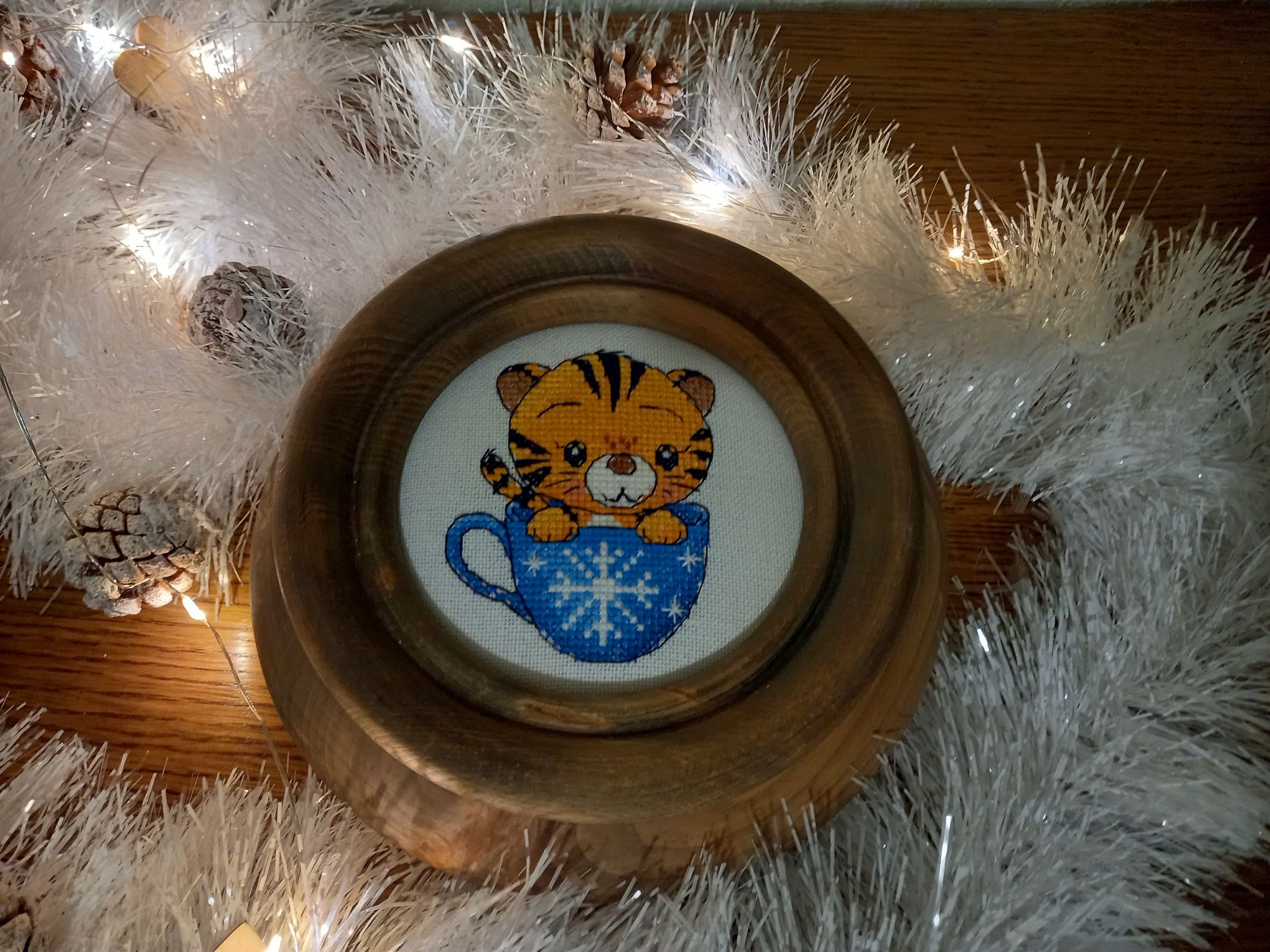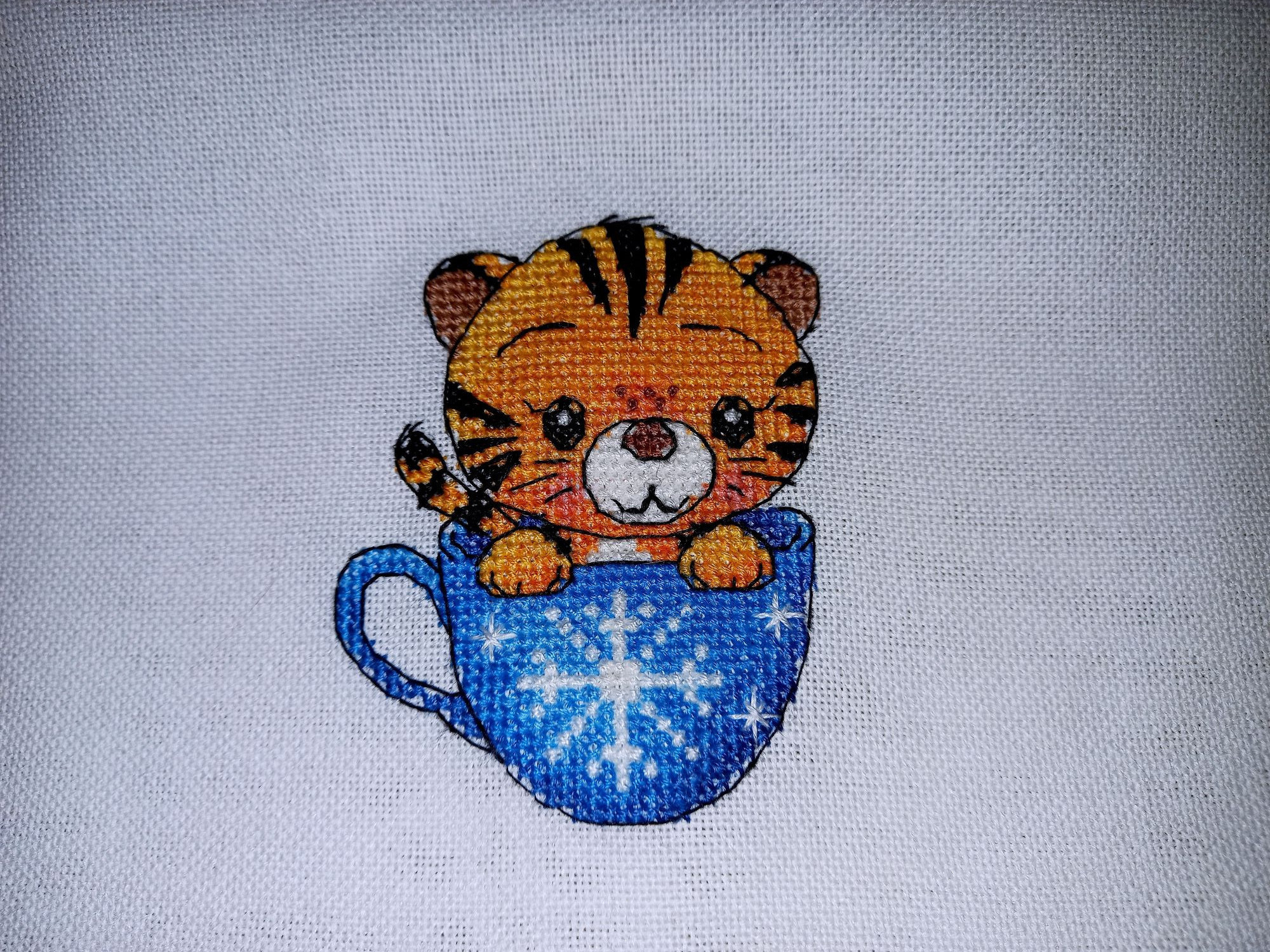 30 декабря 2021 Проект "Новогодние подарочки" 4-ый секретный процесс "Тигренок в чашке" от Овен. Этот прелестный малыш семейства кошачьих показался мне самым милым дитятей из всех просмотренных мною тигрят. У этого тигренка две миссии, одна тайная, а вторая, как у всех тигров - быть защитником дома, и не только от пожара! По задумке производителя, это должен был быть магнит на пластиковой основе, но я естественно, заменила её на равномерку белого цвета Бритни Лугана 28 каунта. Процесс: Танин тигренок привлёк мою маленькую новорожденную Усольку. Хотя, как вы видите по фото, скорее её интересовали проводочки, шишки, и другой антураж. А сидеть в чашке Усолька не хотела даже 20 секунд! svetlana62, АлёNка, Хозяйка смешных зверей и 16 других сказали спасибо Поделиться сообщением Ссылка на сообщение