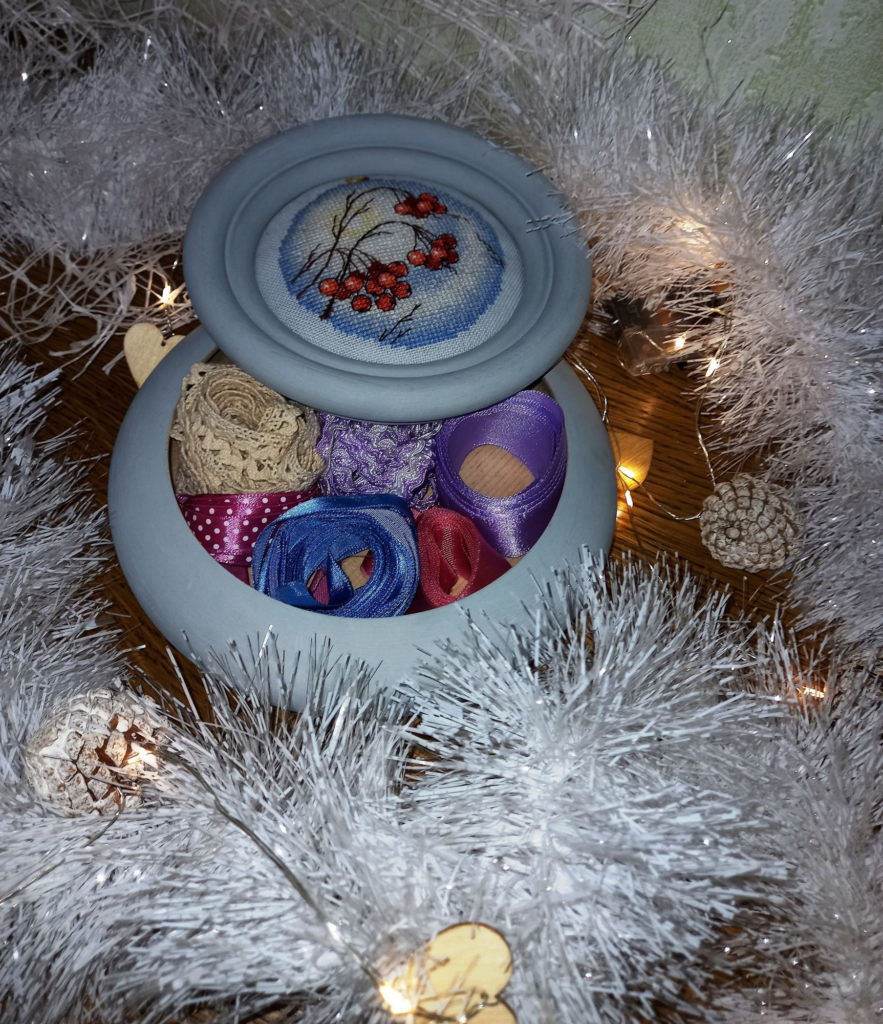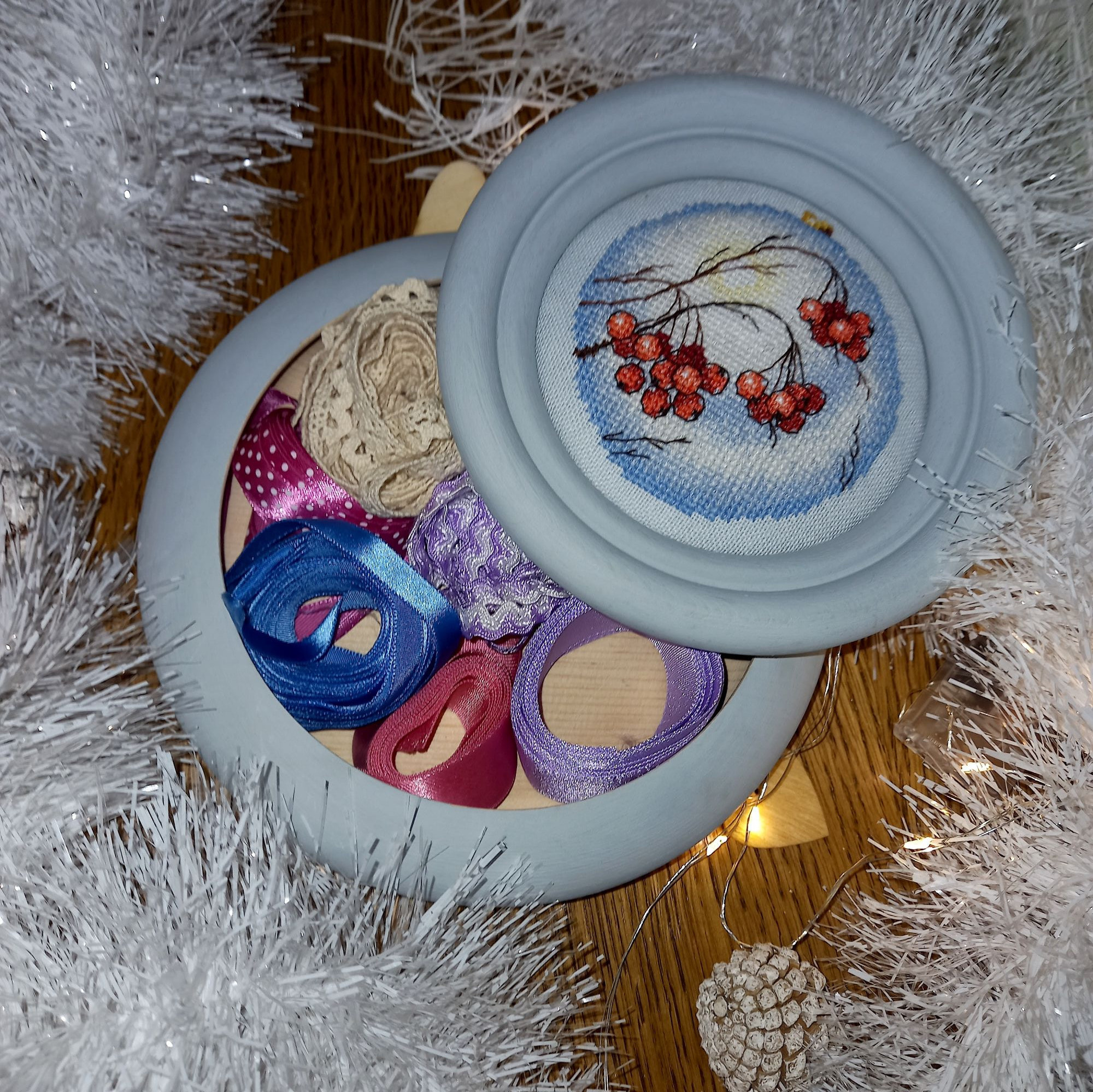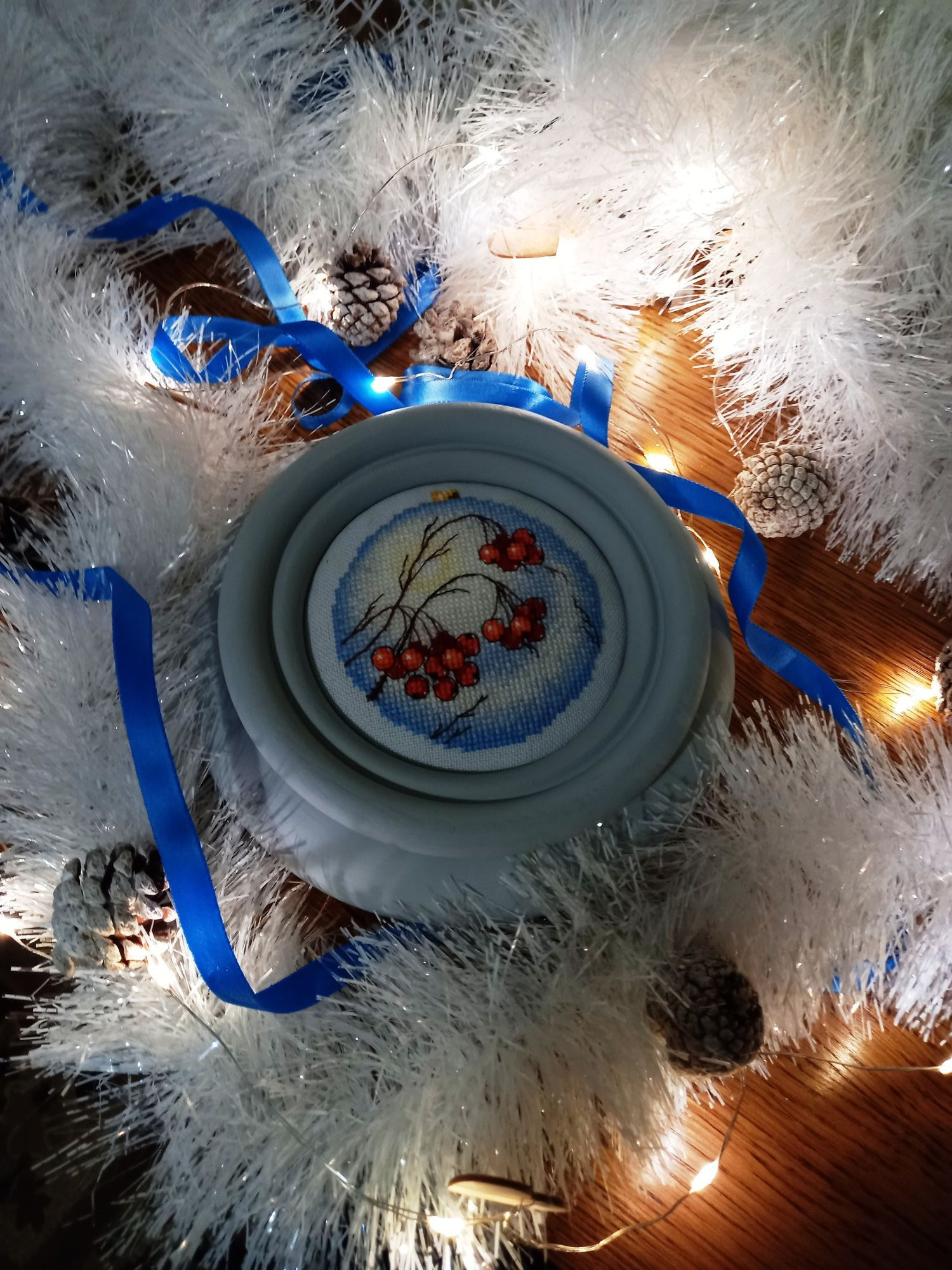 1 января 2022 Есть ещё один секретный процесс из проекта "Новогодние подарочки". Он уже благополучно доехал до своей обладательницы, поэтому могу показать всем. А она уже потом, если захочет, поделится своими впечатлениями позже, т.к. в данный момент осуществляет свой проект "Новогодний" Очень нравится мне шар "Морозная рябина", и я решила вышить его Леночке @lenning, как привет от её шара Снежная Вьюга, подаренного мне! Выбрала равномерку для него голубую, Бритни Лугана, 28каунт, и вот что у меня получилось: Надеюсь, что Лена найдет, что хранить в такой шкатулочке! svetlana62, sta.nsk, lefkorosida и 17 других сказали спасибо Поделиться сообщением Ссылка на сообщение