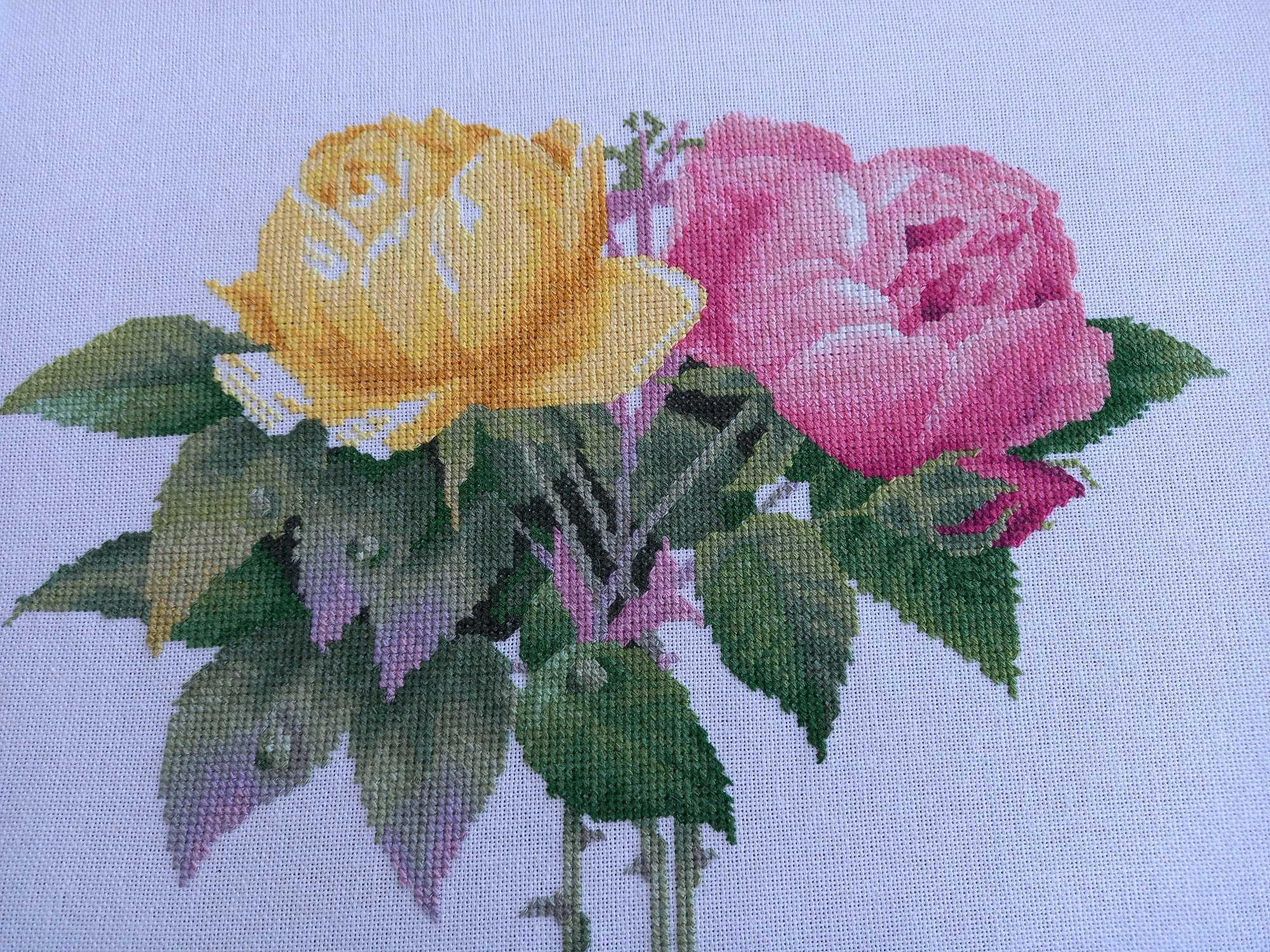 10 июля 2022 14 часов назад, svetlana62 сказал(а): Марина,какие красивые розочки! Желтая еще лучше чем розовая.... Спасибо, Света! Все розочки тут разные, Тем и прекрасен букет. Каждая красива по-своему. 14 часов назад, svetlana62 сказал(а): 3/4 крестика еще не шила ни разу,предстоит шить в Закате от Анхор,наверное на равномерке их шить проще,чем на Аиде.... Конечно на равномерке проще, там же не надо дырочку в середине клеточки прокалывать, как на Аиде. Но там есть один момент, когда один 3/4 крестик уже вышит одним цветом, и ты вышиваешь второй 3/4 крестик, получается на диагонали, где уже лежит две ниточки, надо уложить ещё 2 ниточки второго цвета. Вот тут приходится поколупаться, чтобы все-таки оба цвета были видны, и при этом эти 4 ниточки не пухло легли. а рядом как-то. Потуже затягивала, укладывала. Вроде красиво получается. Иногда в схемах рядом с 3/4 крестика стоит значок 1/4 крестика, там не так. А у меня вся схема и на листиках зеленых, и на стеблях, и на цветках... везде, в общем, 3/4 крестика. svetlana62, АлёNка, Tatiana2406 и 2 других сказали спасибо Поделиться сообщением Ссылка на сообщение