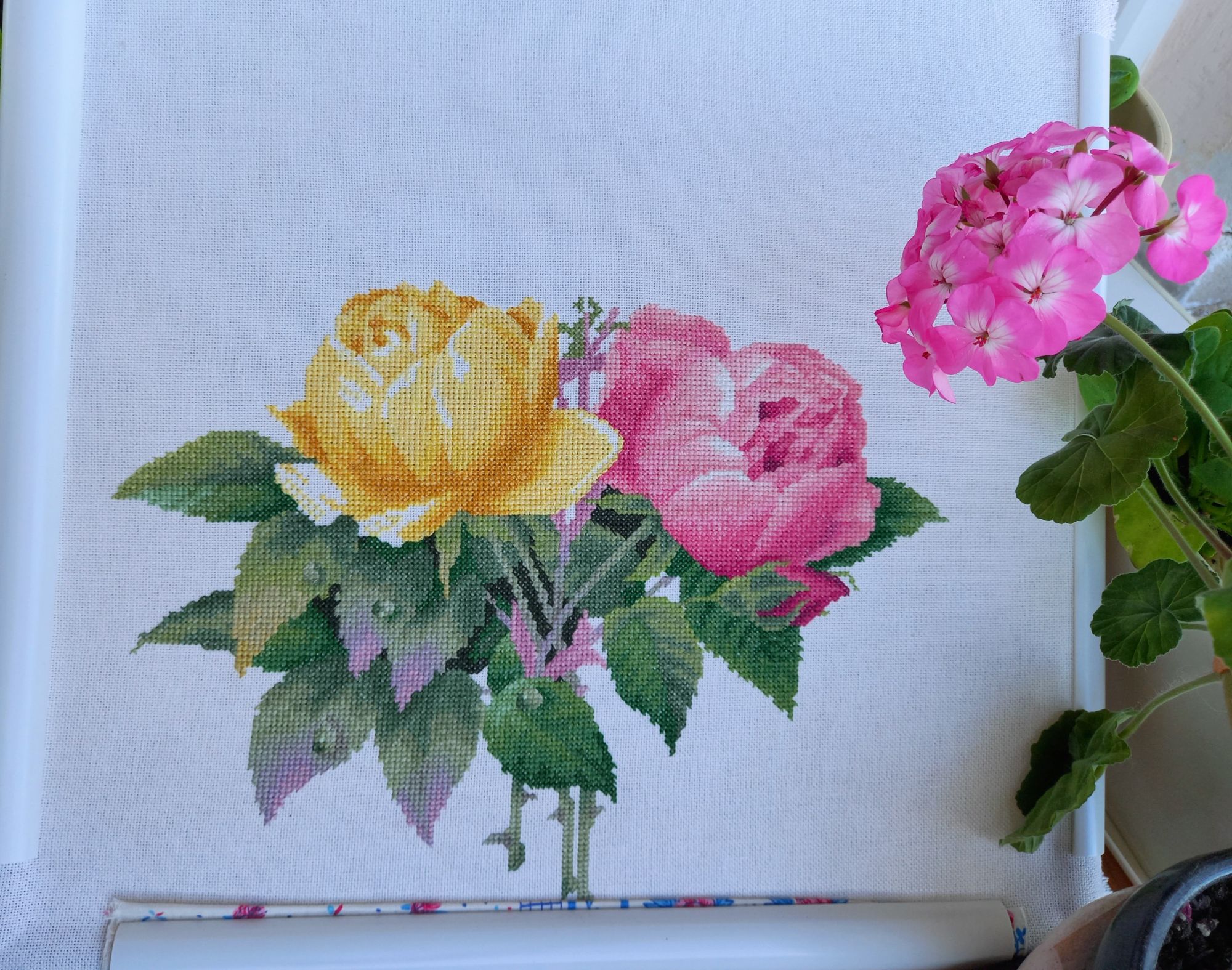 9 июля 2022 2 часа назад, Tata44 сказал(а): Продолжение Душистых роз. Летом чуть медленнее вышивается, но результат радует. Сначала хотела показать на этапе, когда совсем немного не дошилась желтая роза но через 5 дней уже дошила розочку и бутон появился Опять много 3/4 крестиков. Но на желтом это как-то не сильно заметно. У нас всё ещё белые ночи. Вот фото в 21ч.40мин. Луна видна. Это вид из моего окна.Если присмотреться, то видно, что на мостах уже включено освещение (его, кстати в 20ч30 мин. включают) Розы есть розы, красота! Но я хочу сказать у тебя весьма приличное продолжение, учитывая непростой дизайн! Хотя после рощи Tatiana2406, Fascinata, 19199707770 и 4 других сказали спасибо Поделиться сообщением Ссылка на сообщение